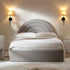 - The bed is upholstered with premium light gray textured boucle fabric from headboard to base to make it the statement piece in any bedroom.