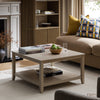 - Square table top offers ample space for books, trays, and everyday moments, while the lower shelf provides more space for storage or styling.