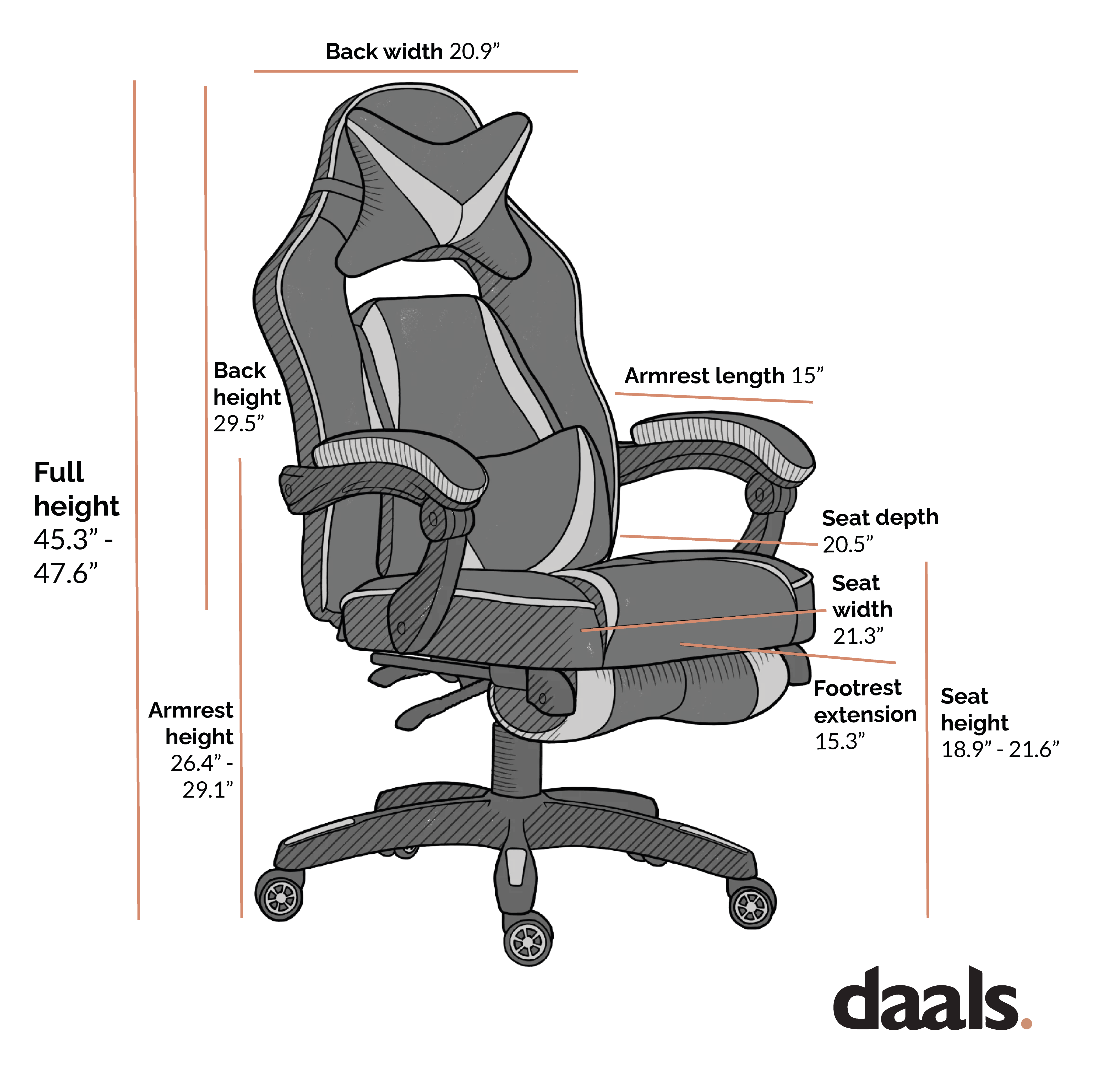 - Armrest to Floor: 26.4~29.1 in.