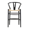 Hansel Wooden Natural Weave Wishbone Counter Stool, Black Frame