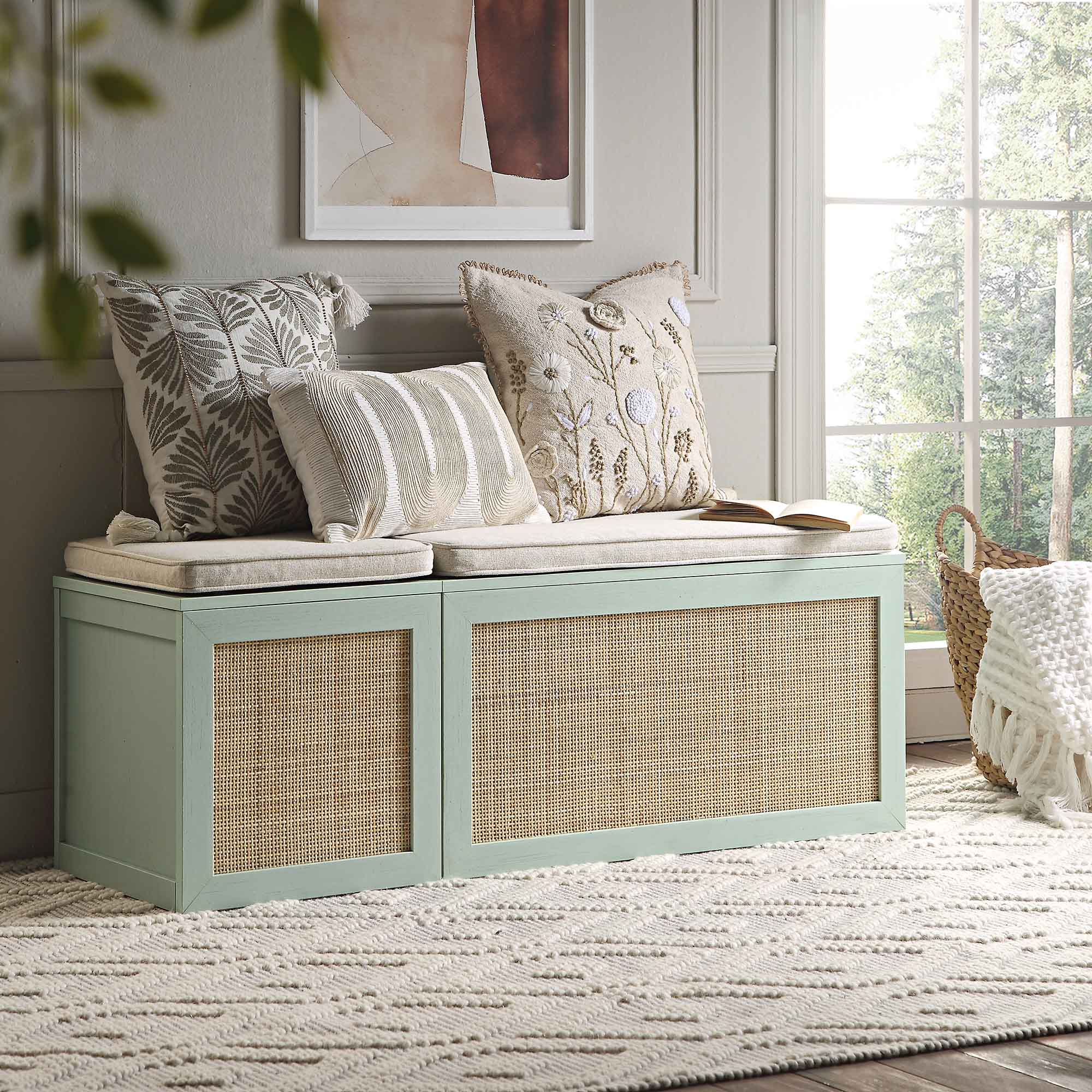 Frances Woven Rattan Triple Storage Stool Set with Cushion, Mint