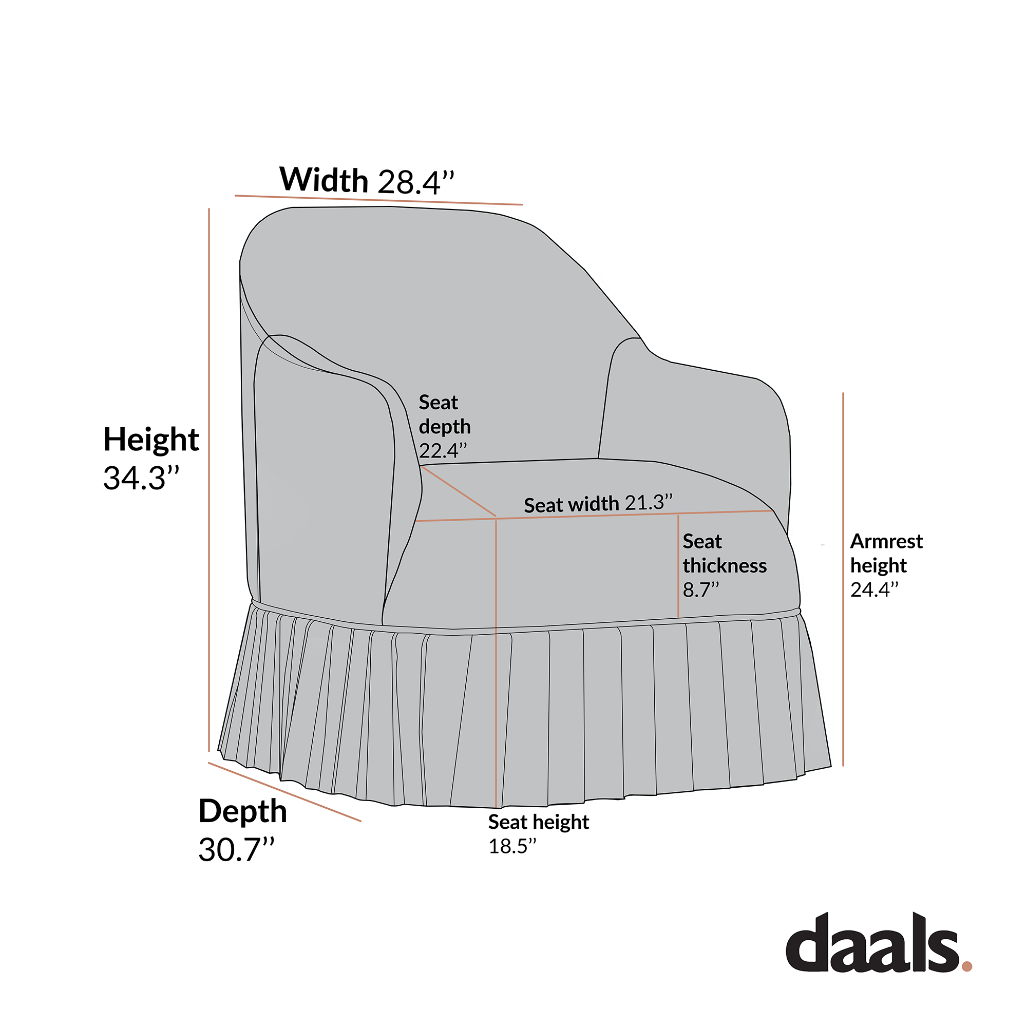 - Designed with beautiful sloped arms and skirted bottom, the compact-sized armchair is ideal for room corners, dressing rooms, bathrooms, or as an additional dining seat.