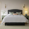 - Upholstered in a rich, mid-to-dark gray woven fabric with a dry, tactile texture, it brings a sense of grounded calm to the bedroom, versatile enough to anchor minimalist interiors or soften industrial schemes.