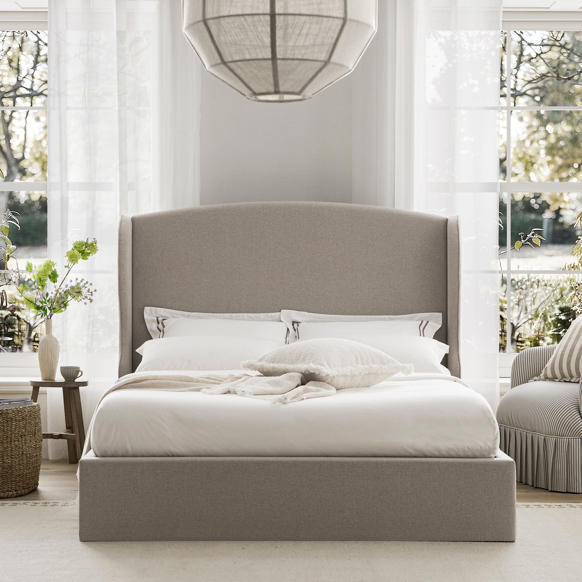 - Introducing our new Kimberly bed, the generously proportioned winged headboard elegantly envelops you, crafting a serene ambiance that ensures a restful night's sleep.