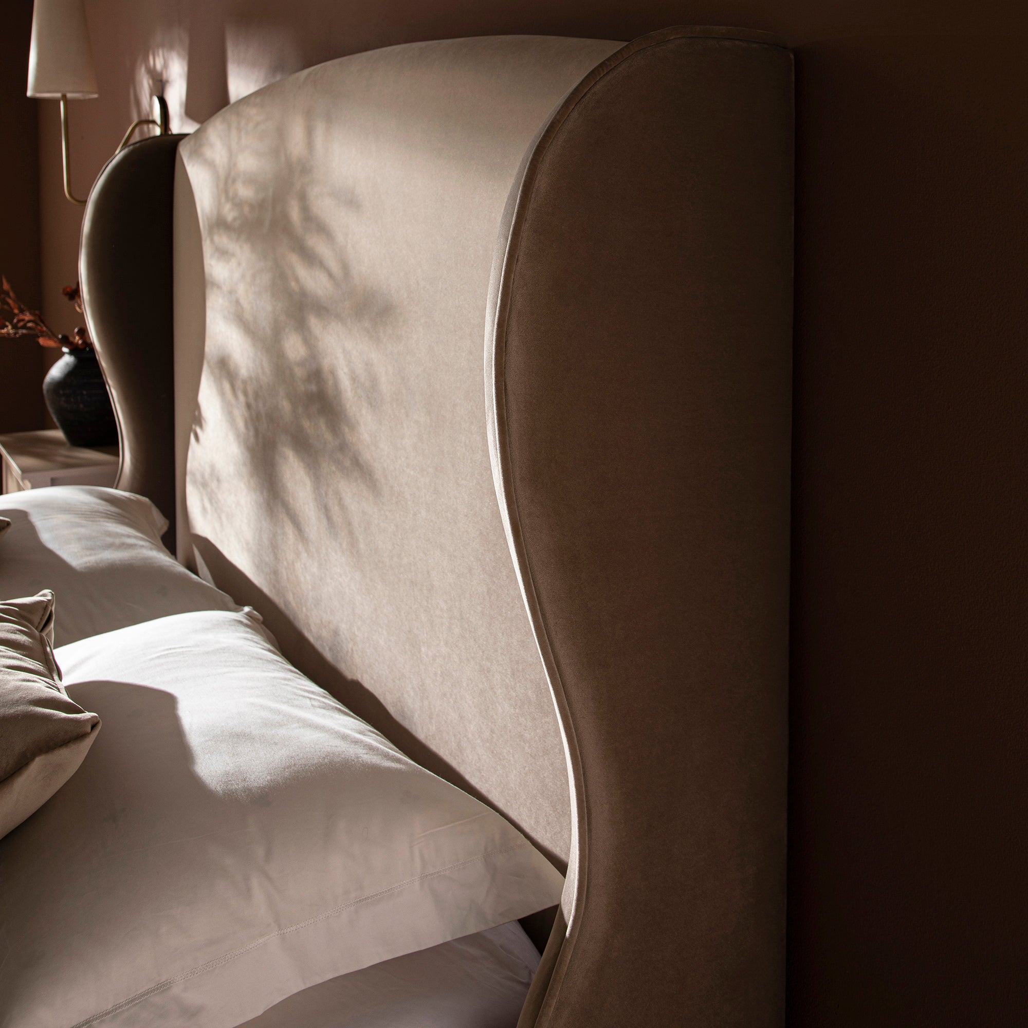 - Introducing our new Kimberly bed, the generously proportioned winged headboard elegantly envelops you, crafting a serene ambiance that ensures a restful night's sleep.