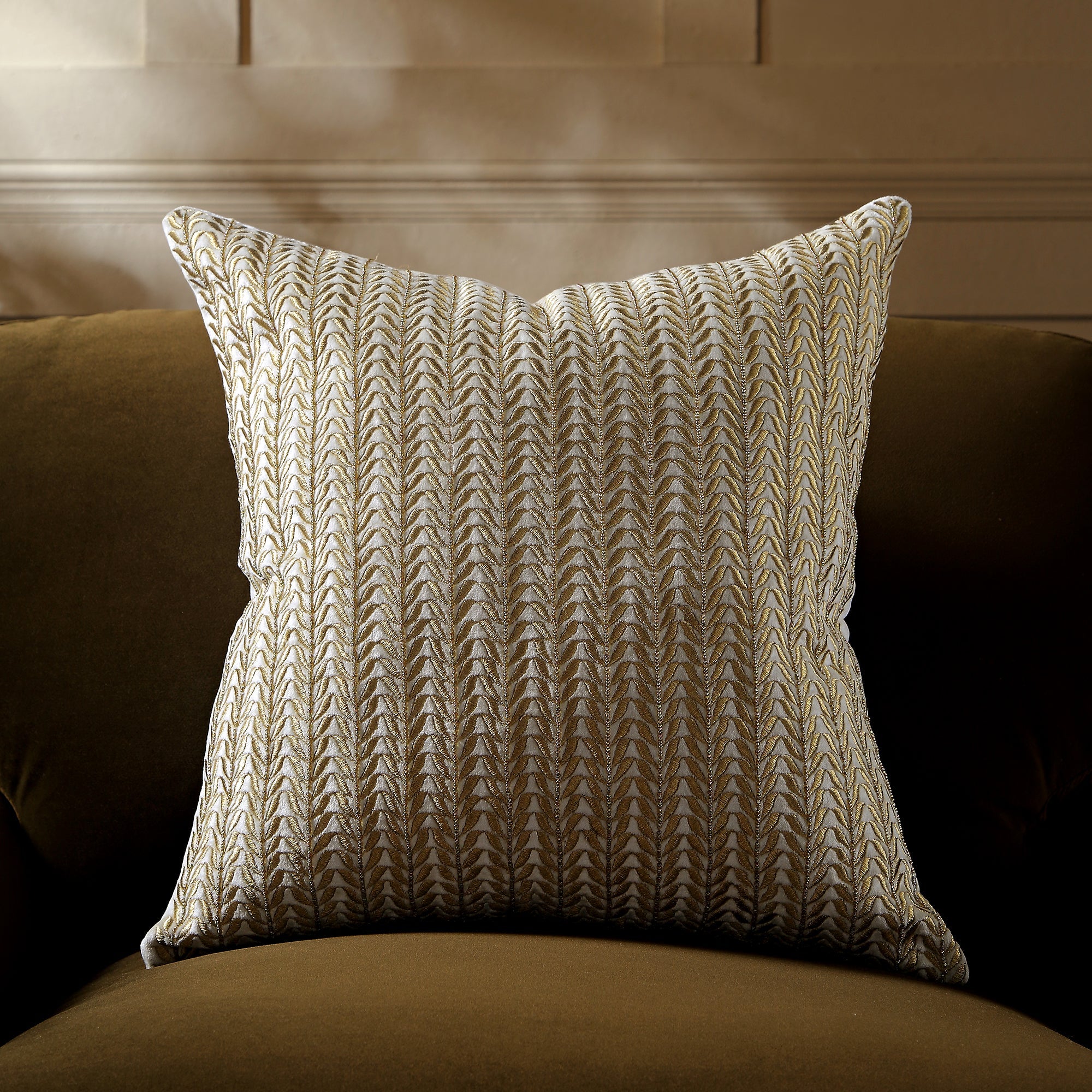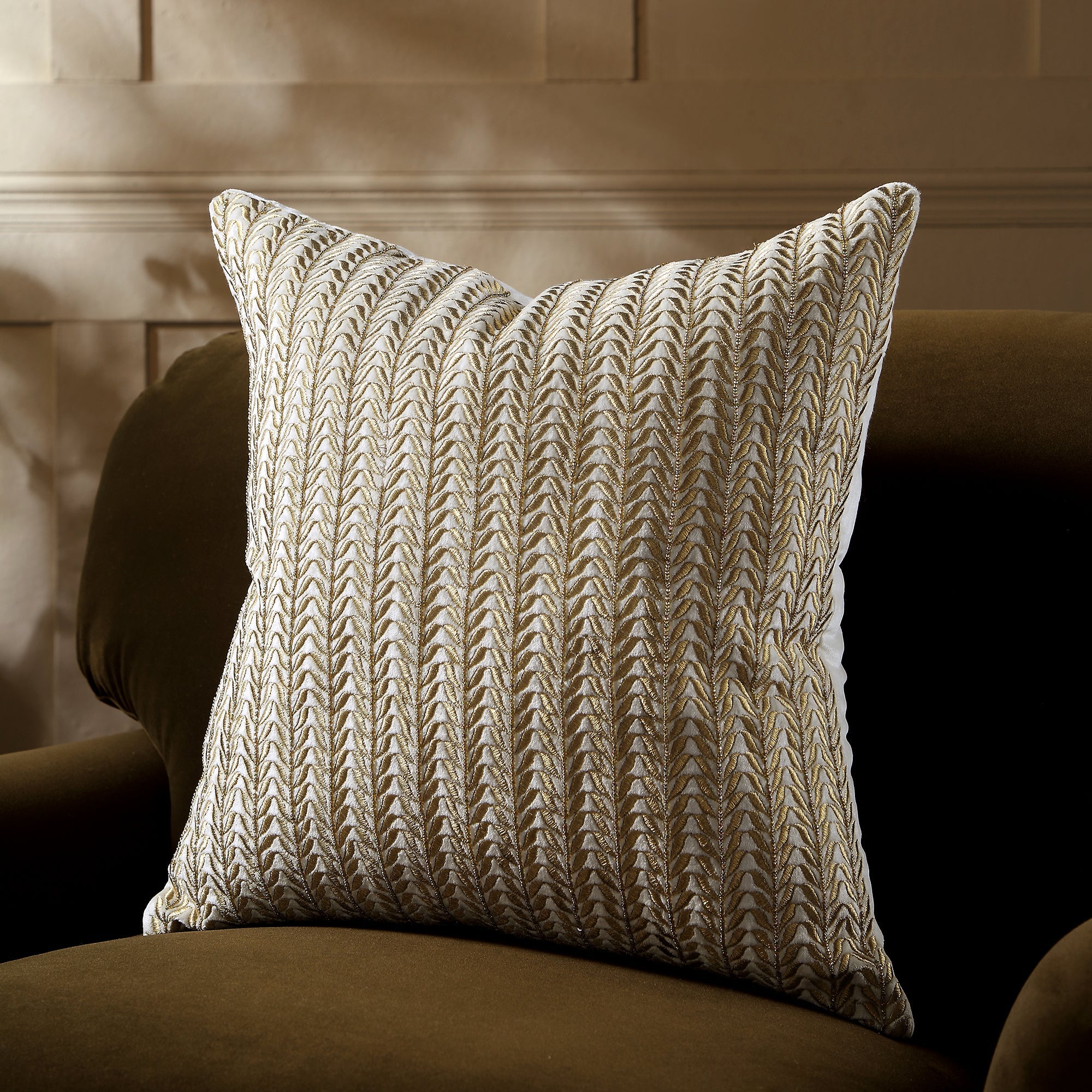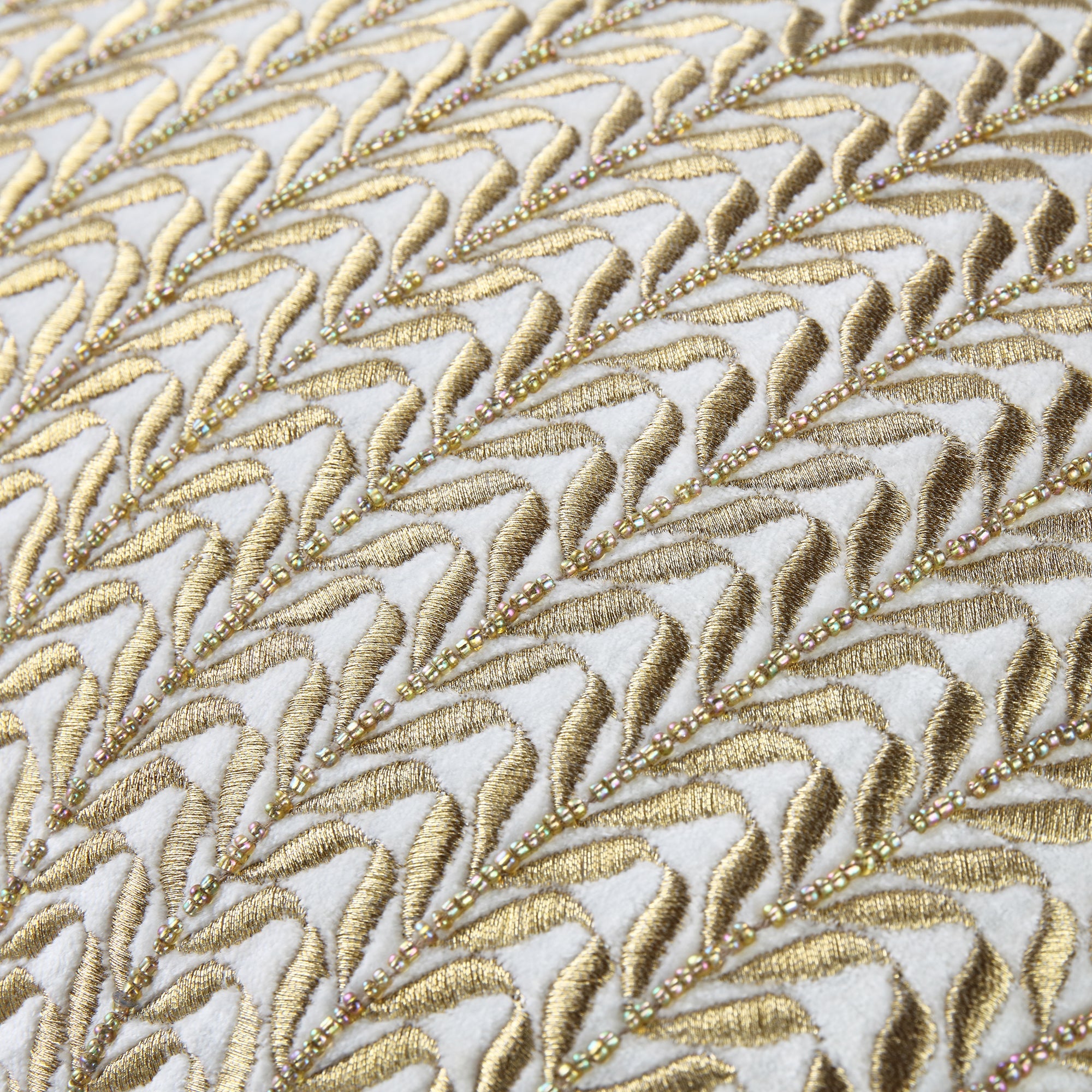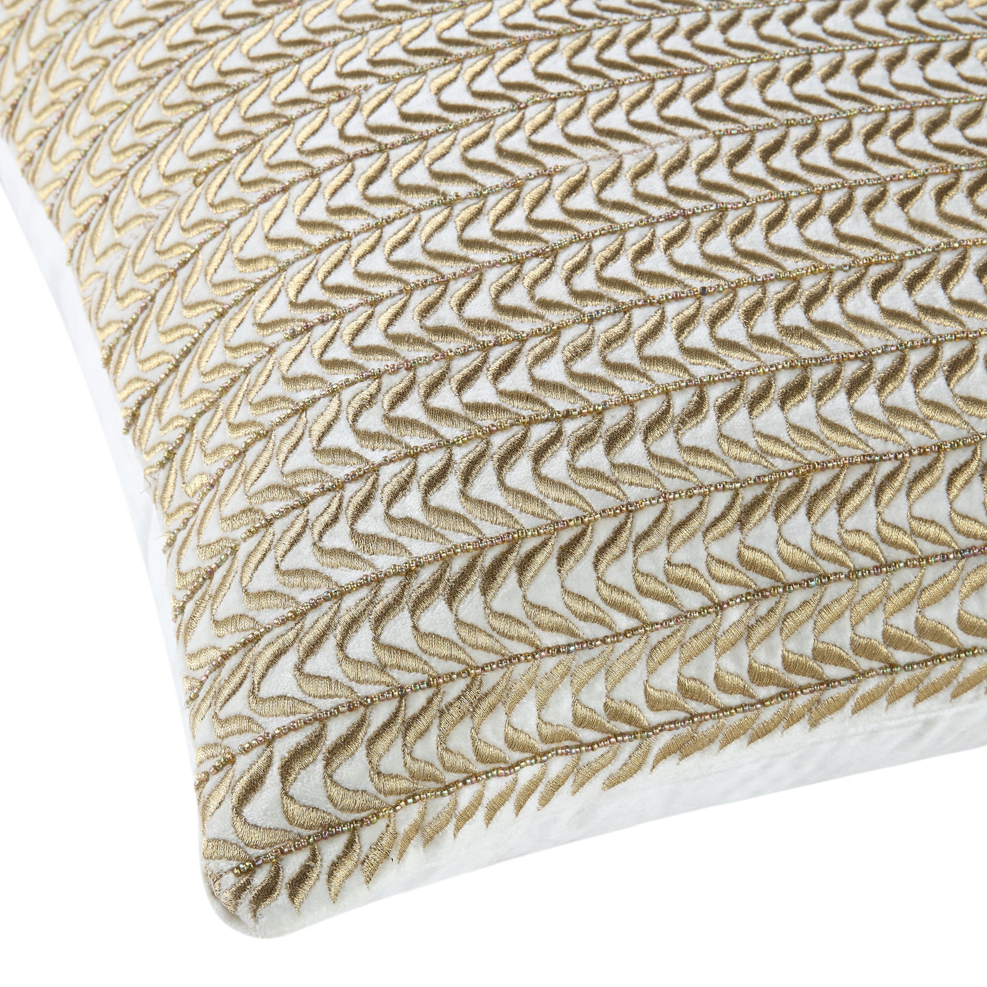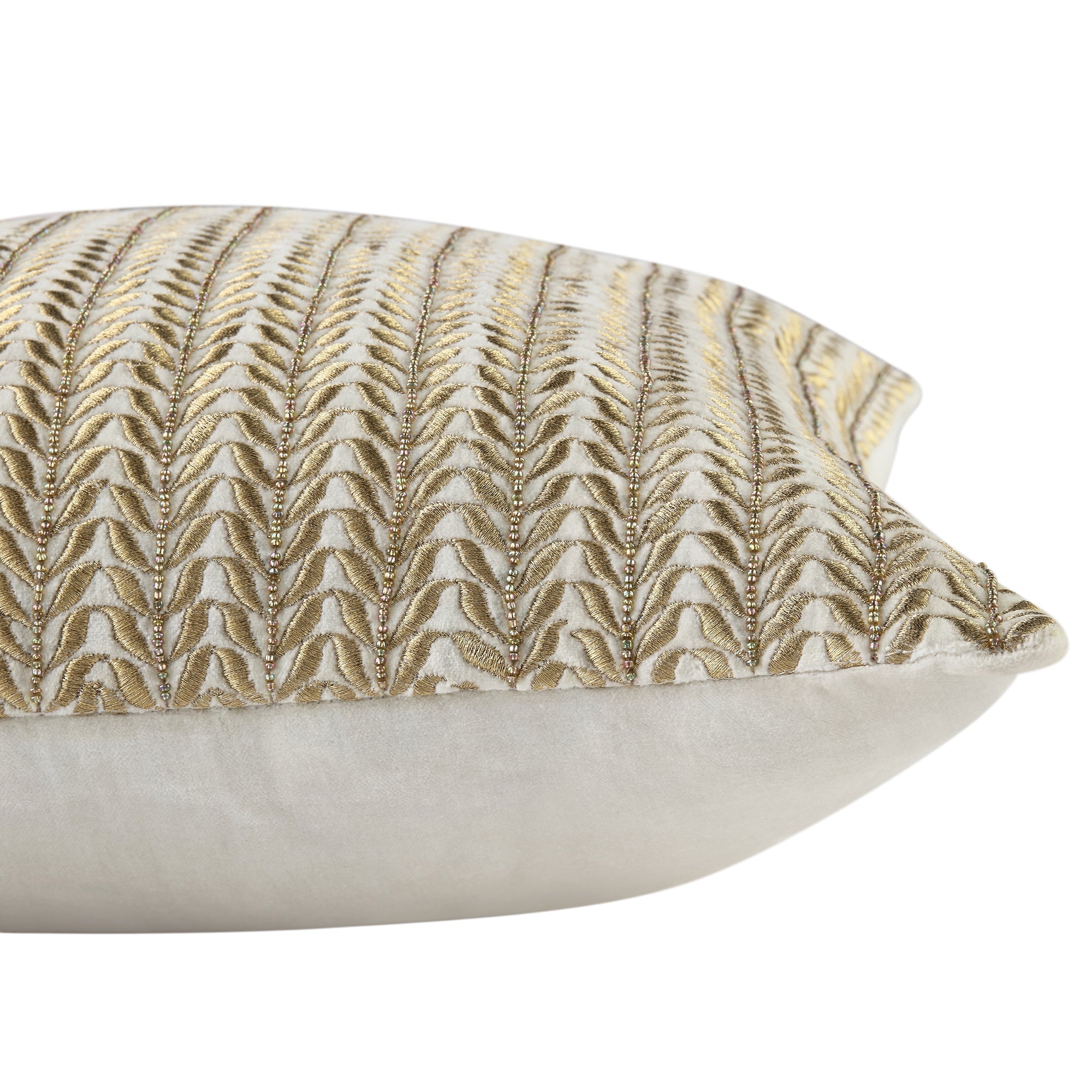 - The Jasmine pillow has been made from sumptuous pearl white cotton velvet and beautifully adorned with golden beads and embroidered leaf detail, making it the perfect solution for glam décor.