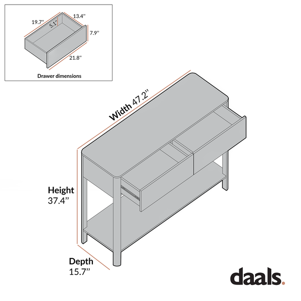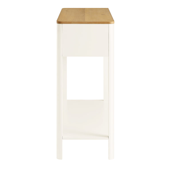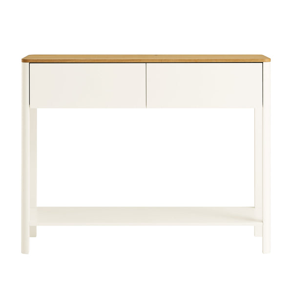Agnes Curved Edge 2 Drawer Console Table, Off White with Oak Top