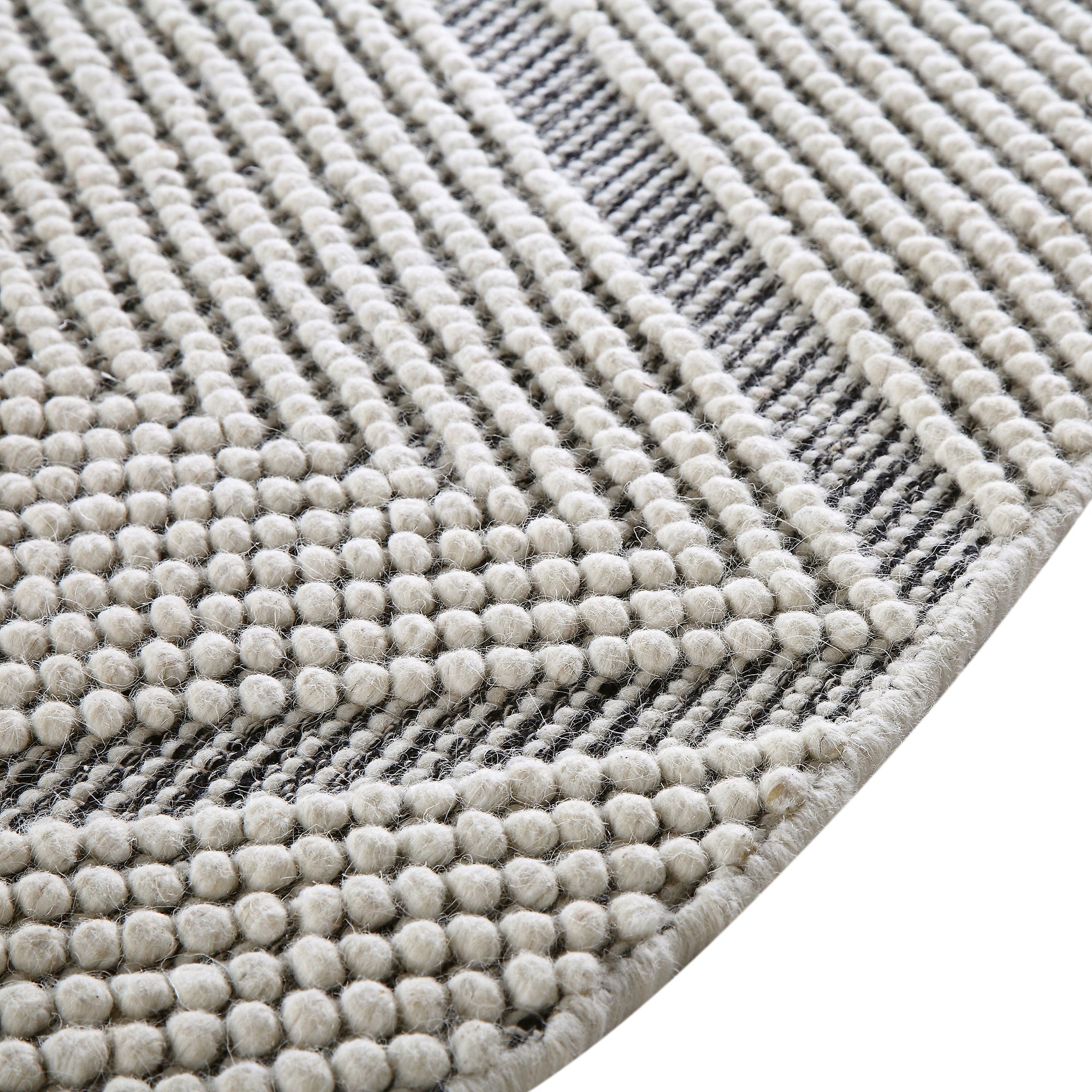 - The Avanti Handwoven Bobble Rug comes rolled and packaged in a clear sleeve