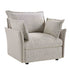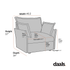 - Upholstered with chic mist gray boucle textured fabric.