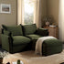 - Upholstered with durable moss green velvet touch fabric, perfect for family.
