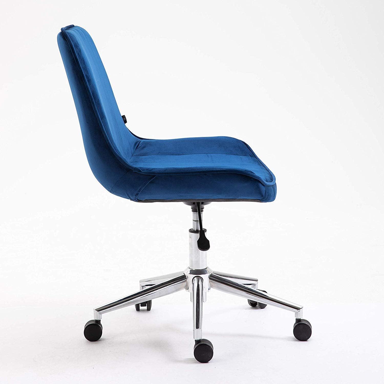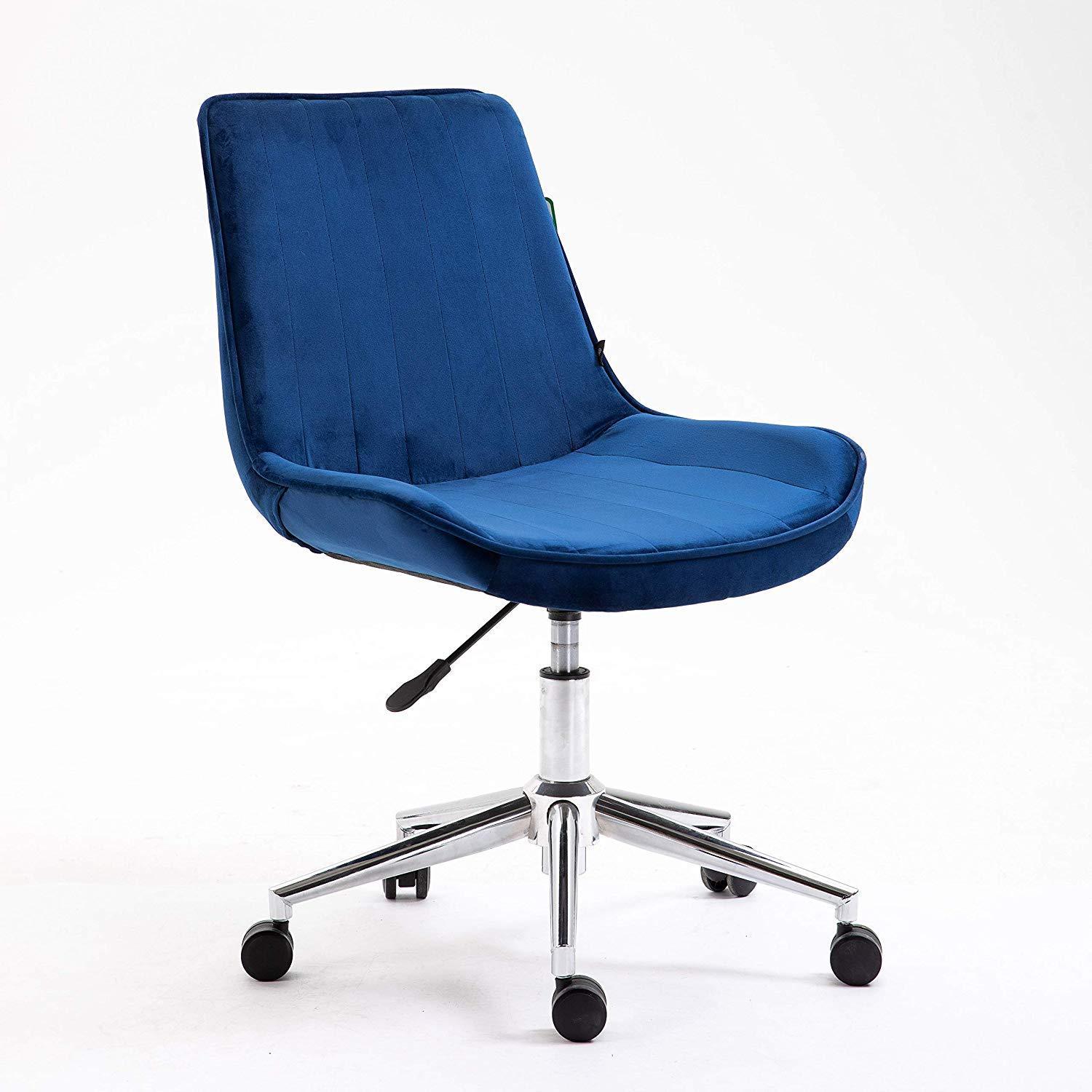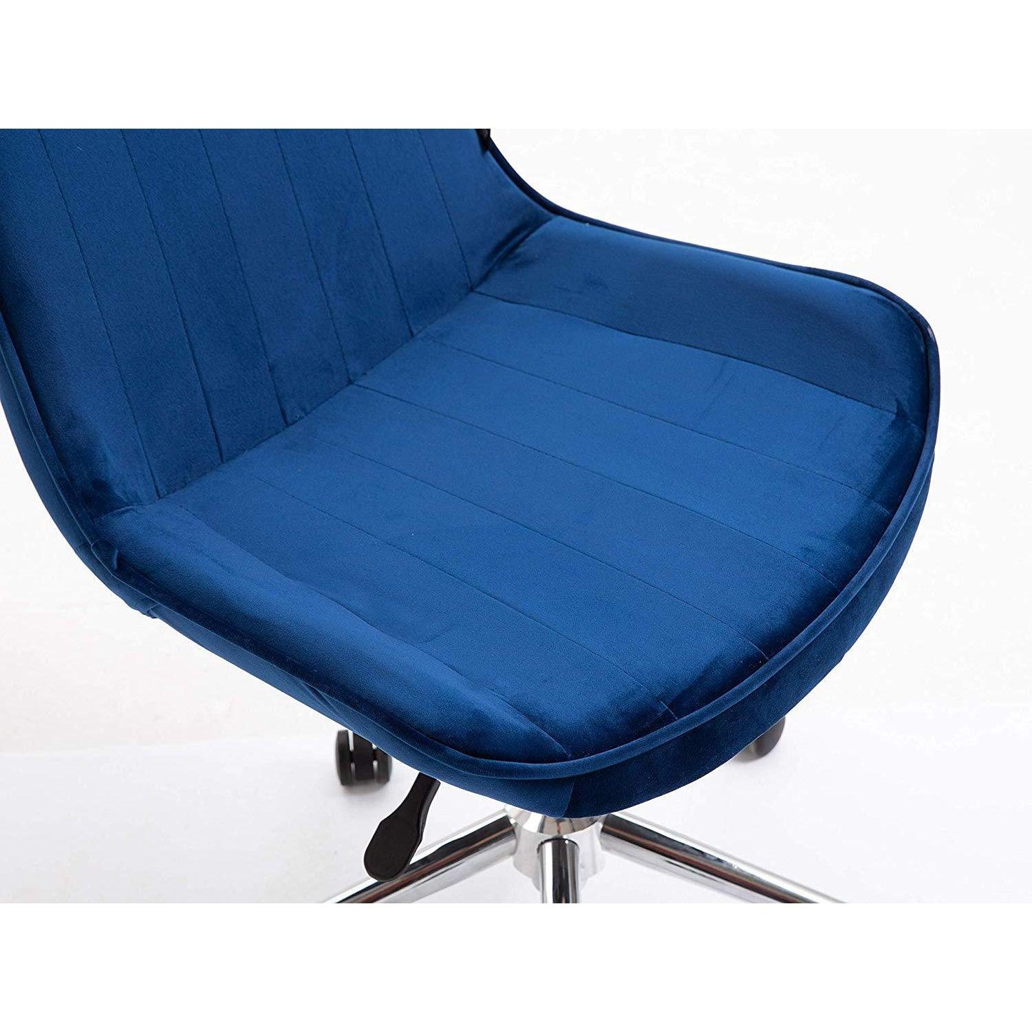 Cala Sapphire Blue Color Velvet Fabric Desk Chair Swivel Chair with Chrome Base