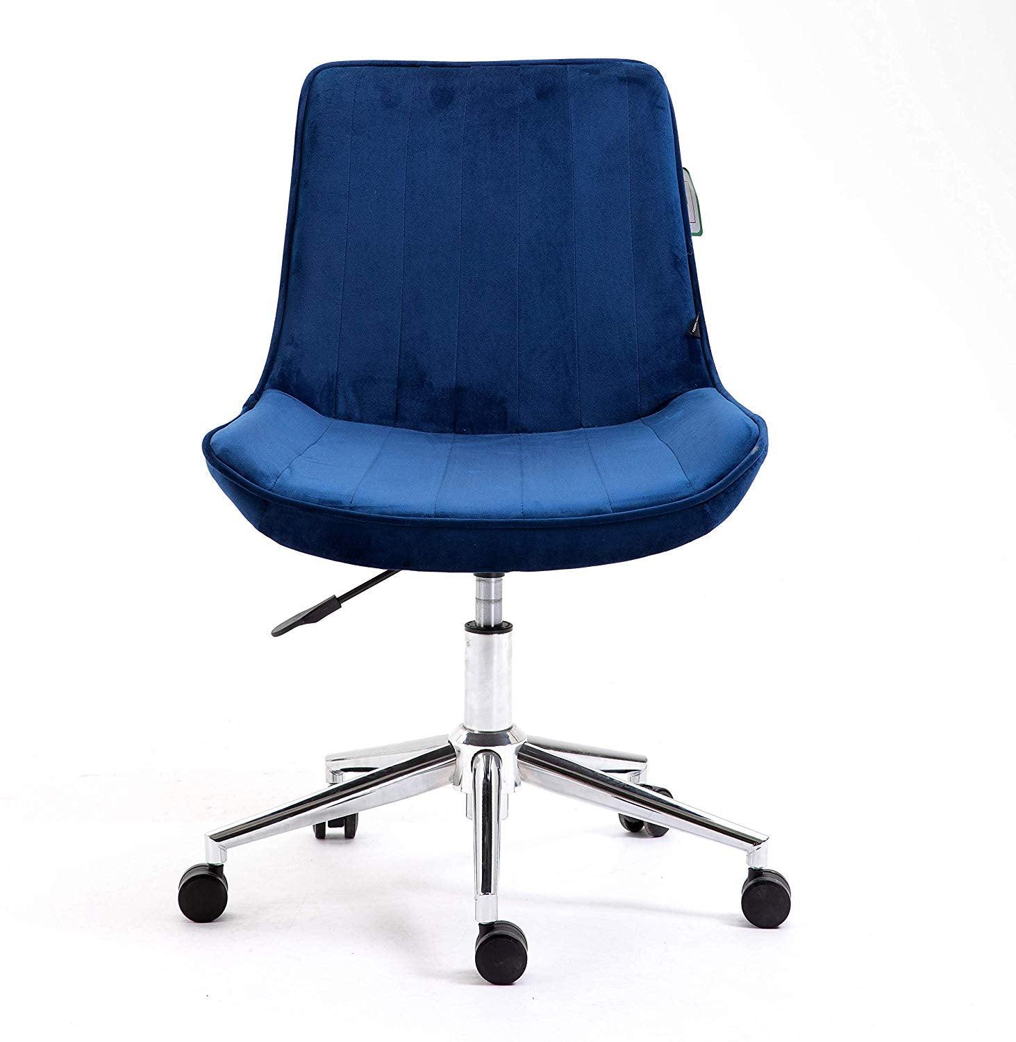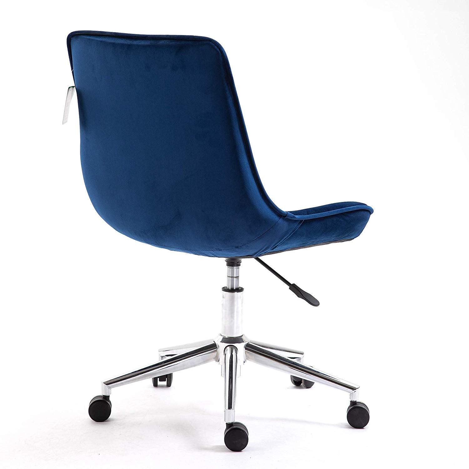 - With beautiful sapphire blue color velvet upholstery and sleek chrome feet, this swivel chair will bring a sense of style to your work/study space.