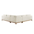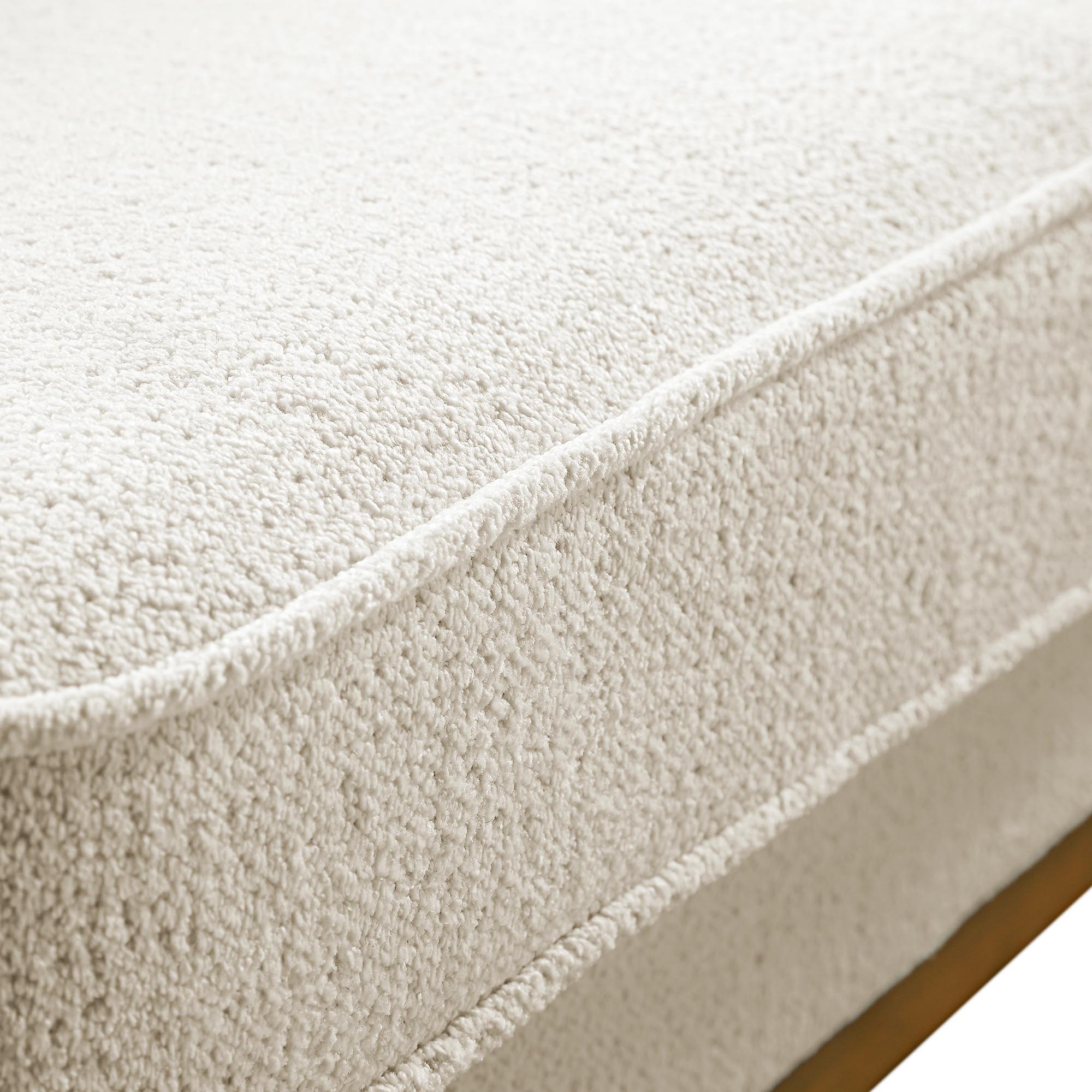 - Combination of beige boucle fabric and solid wood base delivers a cosy and earthy vibe