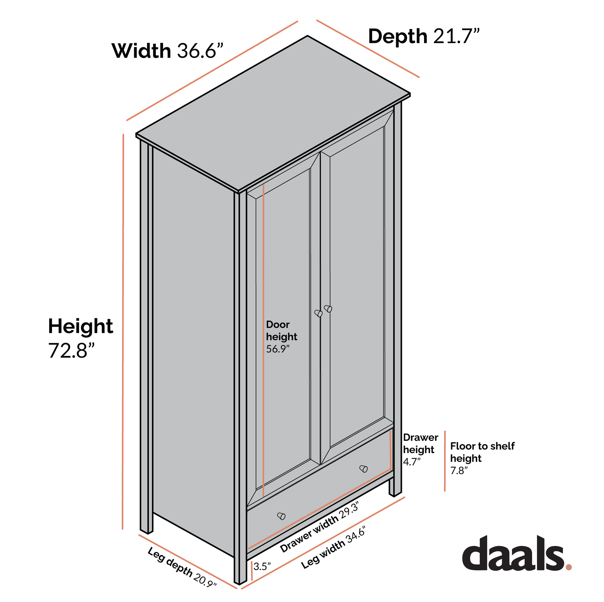 • Size: W 36.6 x D 21.7 x H 72.8 in.