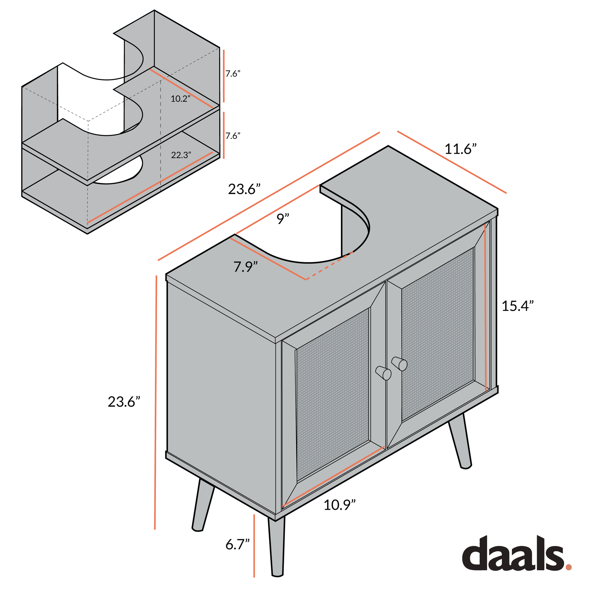 - Overall Size: W 23.6 x D 11.6 x H 23.6 in.