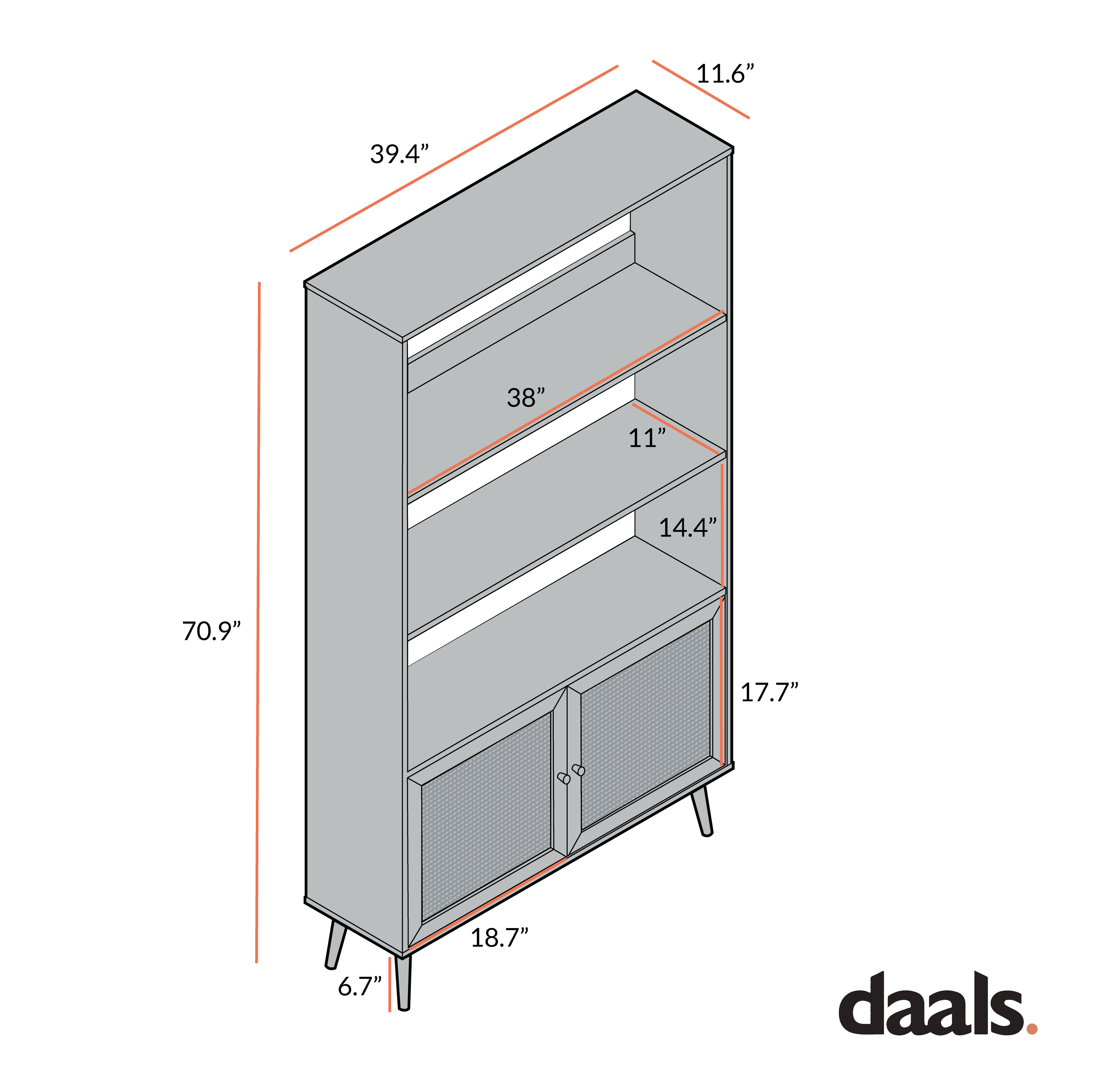 • The Frances Woven Rattan Bookcase also comes with a double door closed section with cabinet space, which is perfect to tuck away any of your items