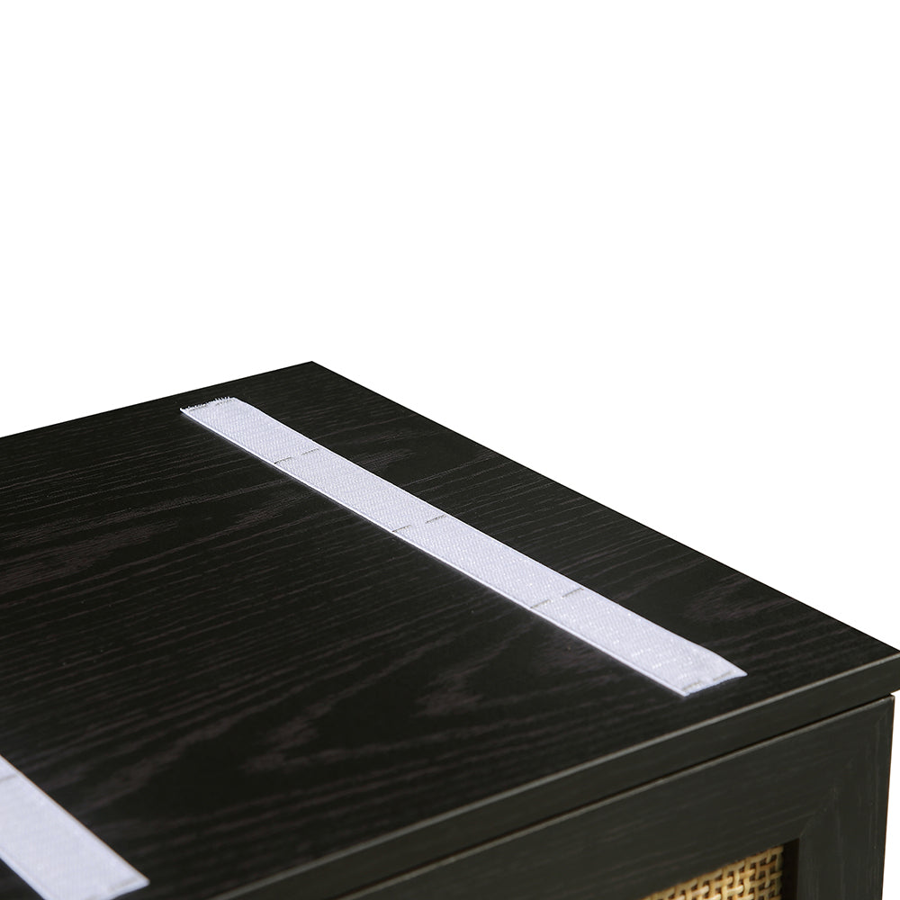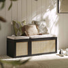 Frances Woven Rattan Triple Storage Stool Set with Cushion, Black