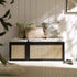 - The natural woven rattan fronts are complemented by oatmeal fabric cushion.