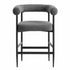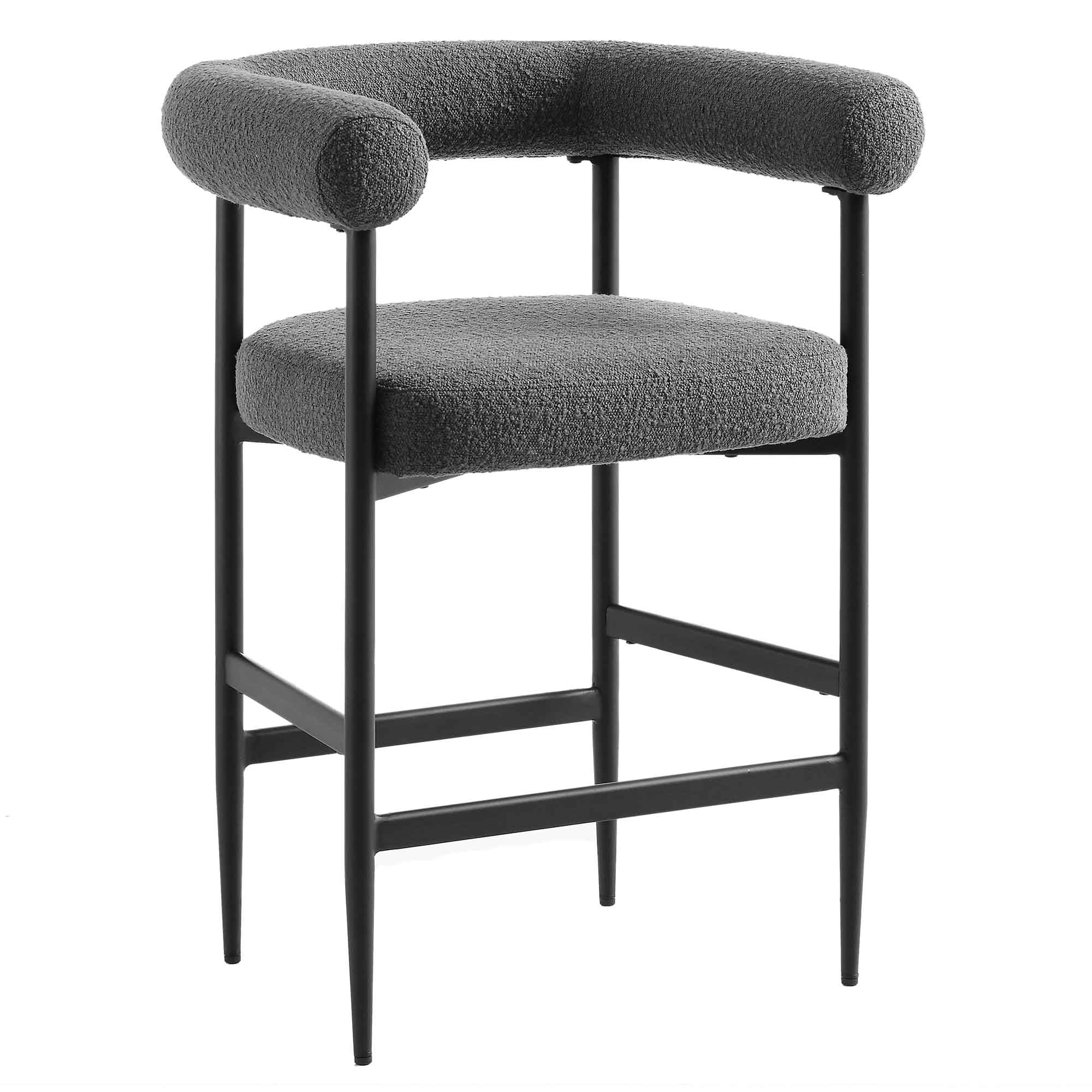 Well-cushioned seat and luxe boucle upholstery in charcoal color is paired with matte black legs for an understated elegant look.