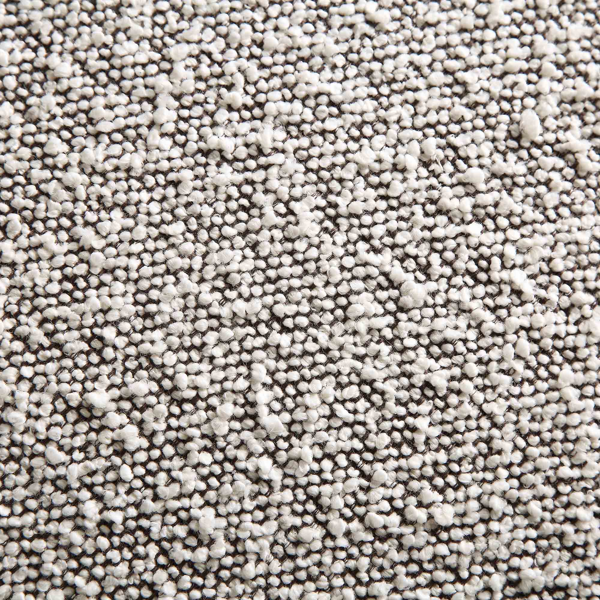 - Upholstered with chic mist gray boucle fabric for a contemporary look.