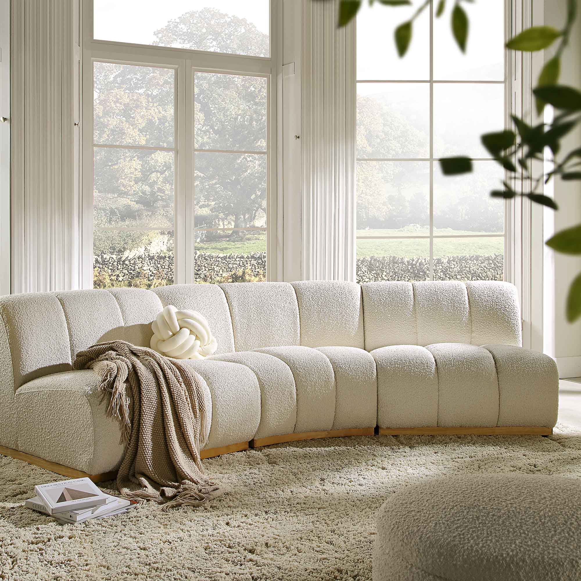 - Complete the look: Pictured with our Granvia Ecru Boucle 3-Seater Corner Sofa is our Amboise Round Storage Pouffe in Ecru Boucle