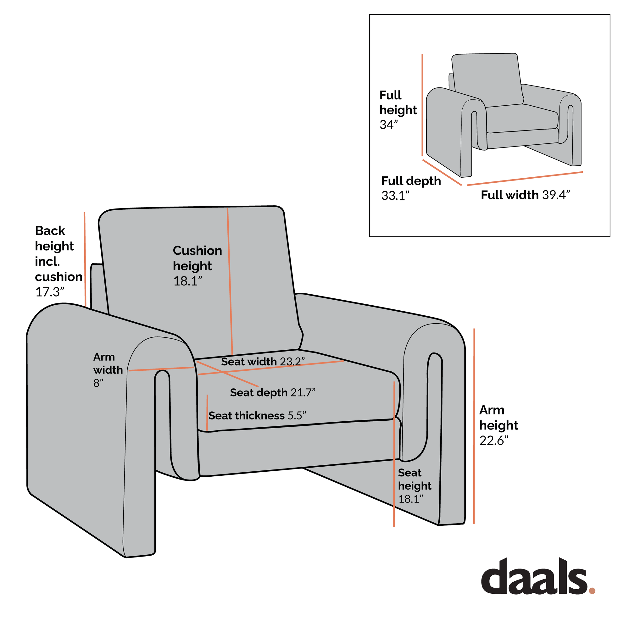- The padded arms seamlessly integrate into legs, creating a sculptural look.