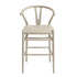 Featuring the Y-shaped back, the counter chair is sturdily crafted from solid elm with beautiful greige color matte paint, coordinating the oatmeal fabric upholstered padded seat.