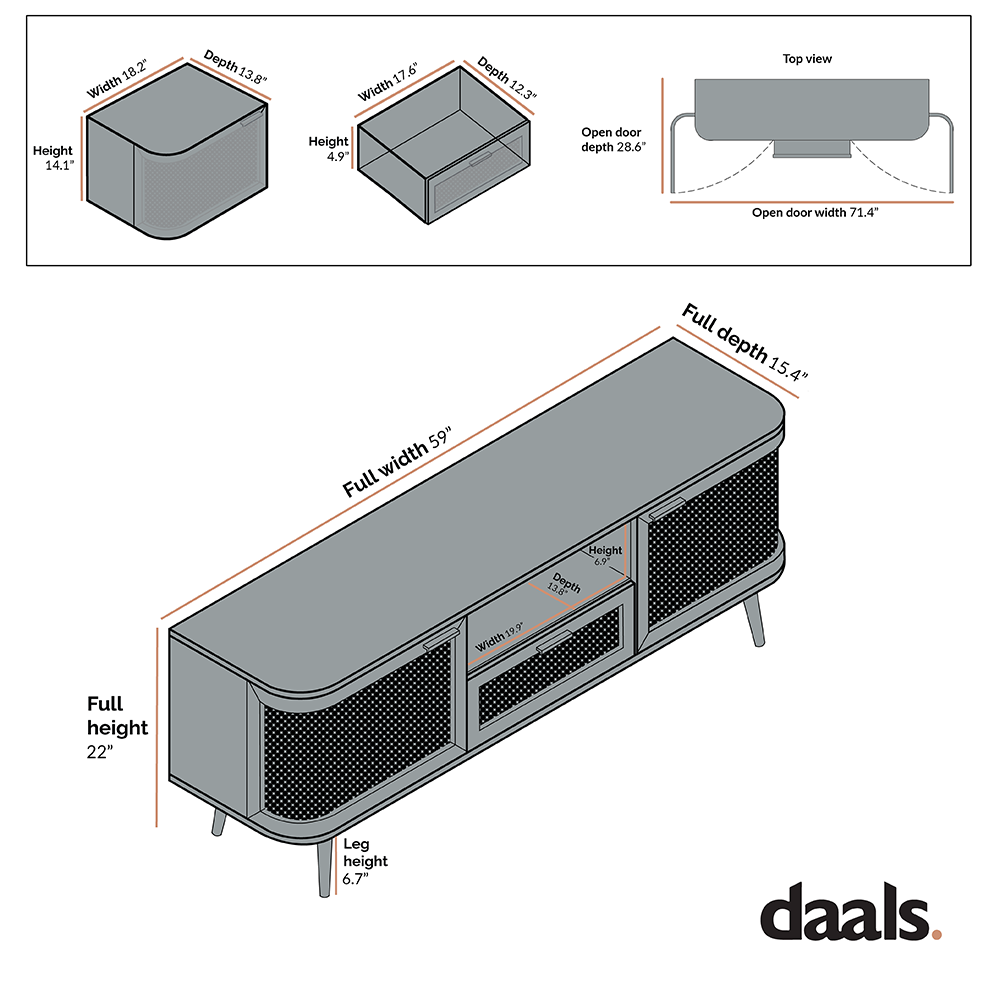 - Bringing natural vibe and lightness to the focal point of the living room, our Izzy TV unit features rounded edges with gently curved rattan panels.