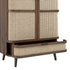 - Featuring a warm, natural wood-effect finish and framed by softly sculpted curves, this closet features airy handwoven rattan panels that bring texture and lightness to the design.