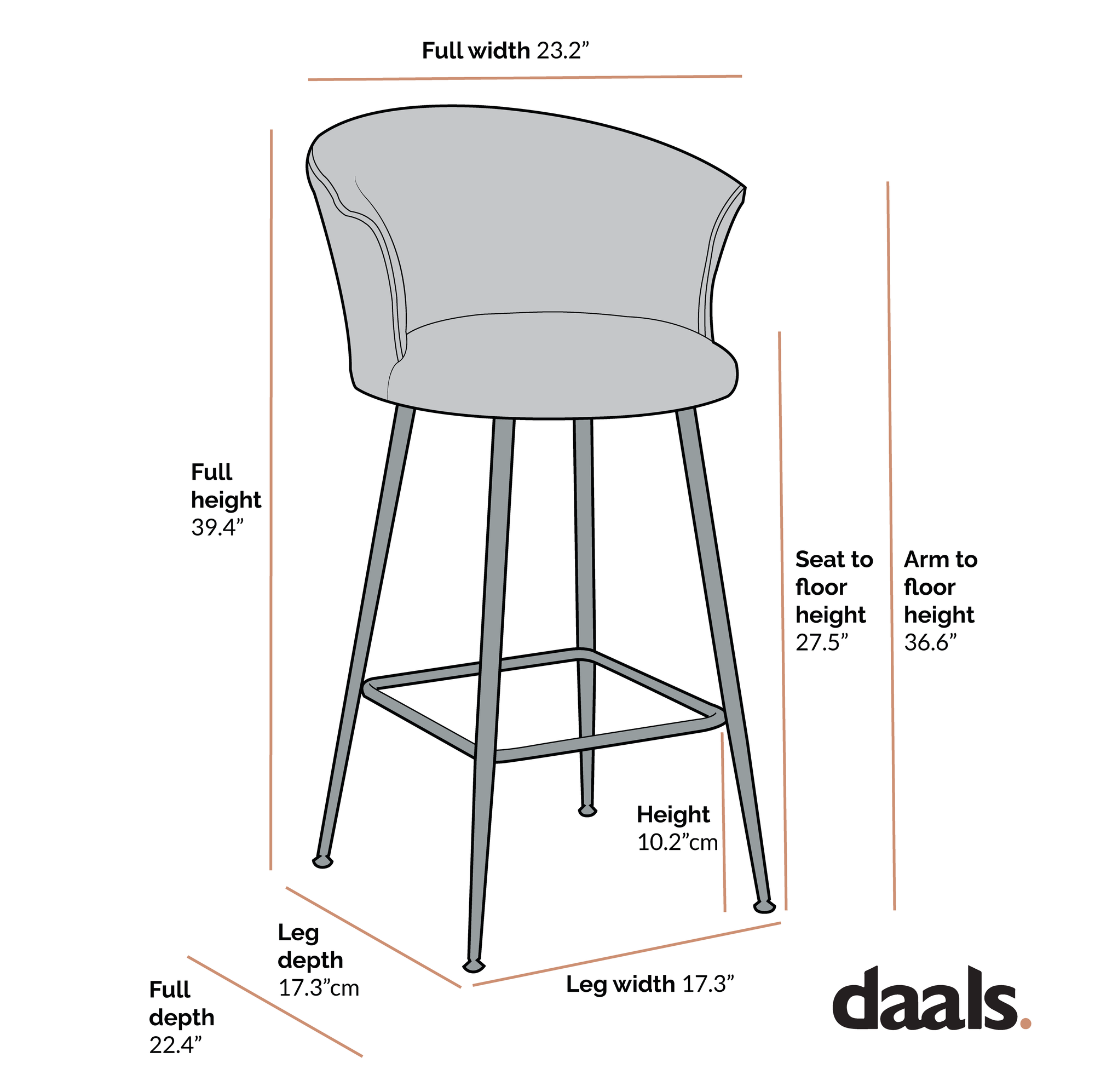 - Seat height: 27.6 in.