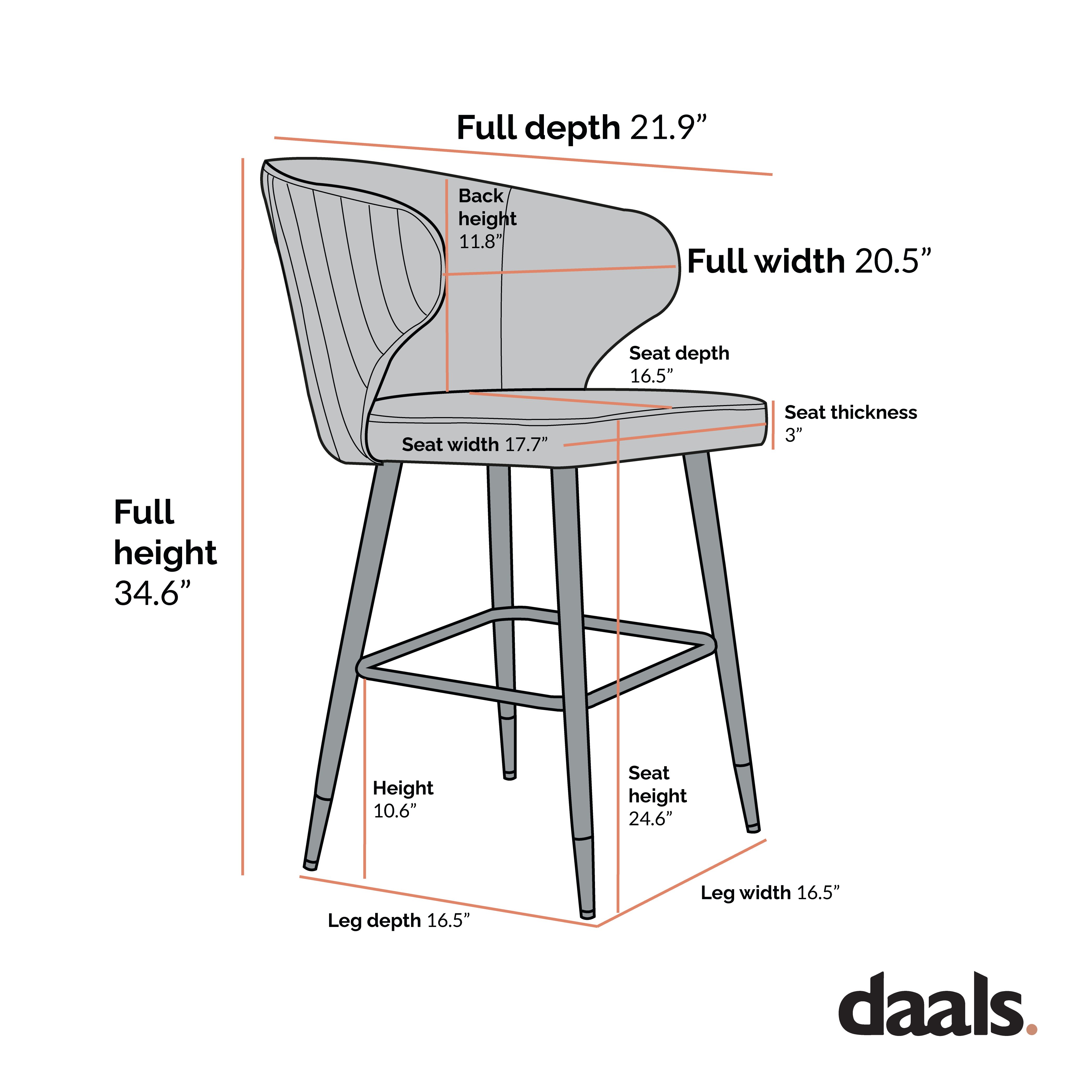 - Seat height: 24.6 in.