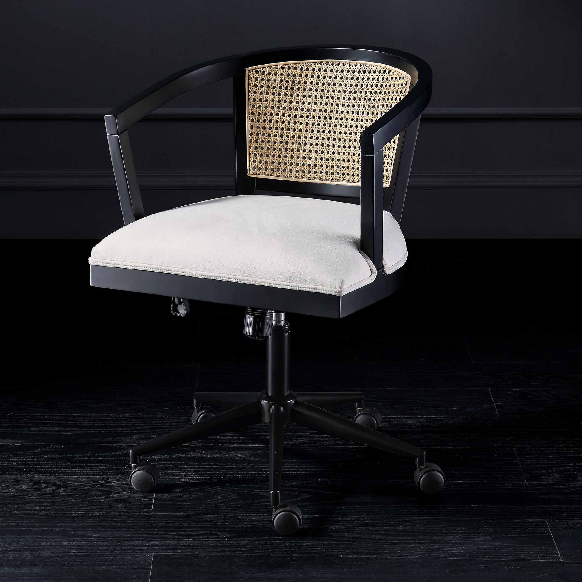 - Our Lucia Cane Swivel chair features a beautiful clam shell design enhanced with contrasting piping details.