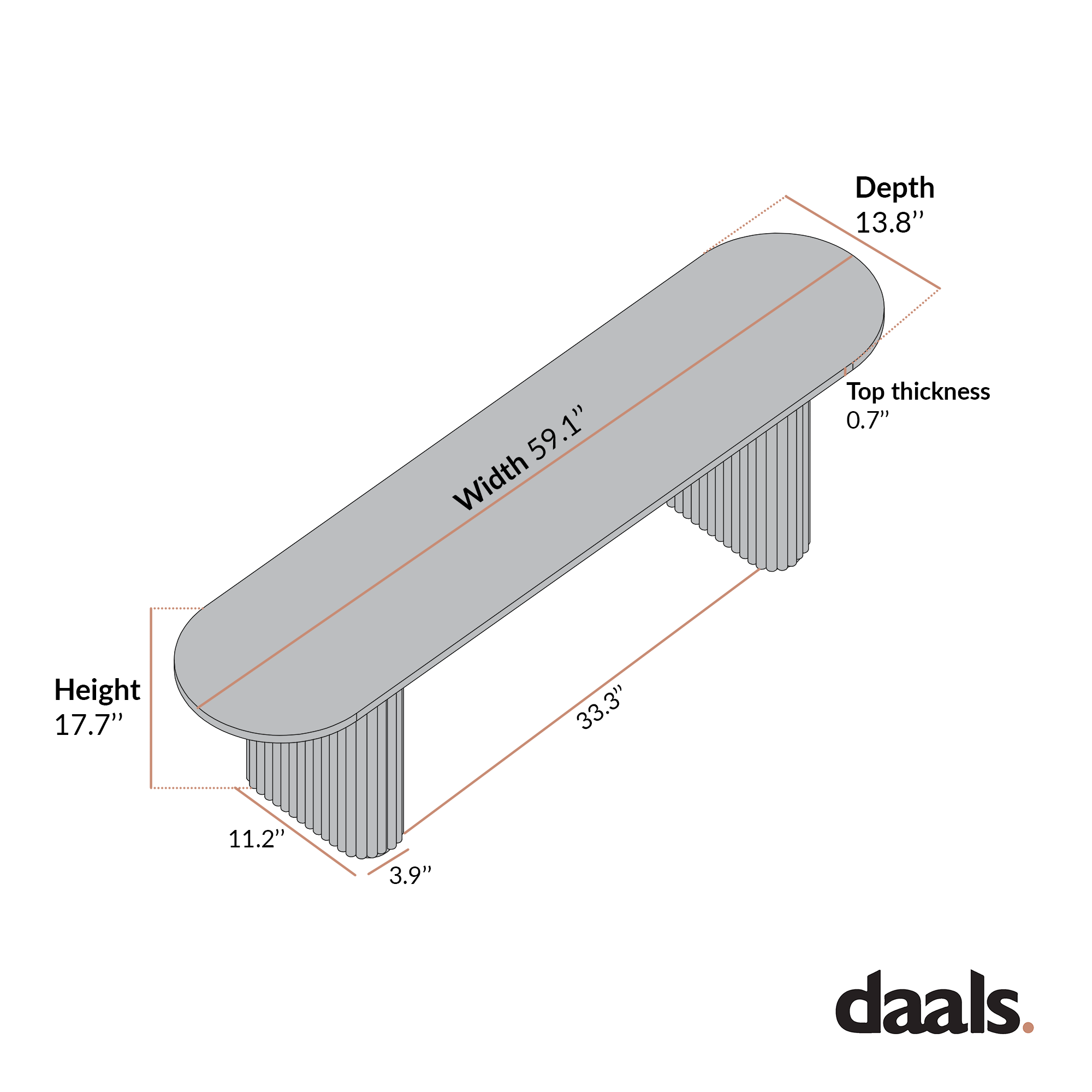 - Overall size: W 59.1 x D 13.8 x H 17.7 inches