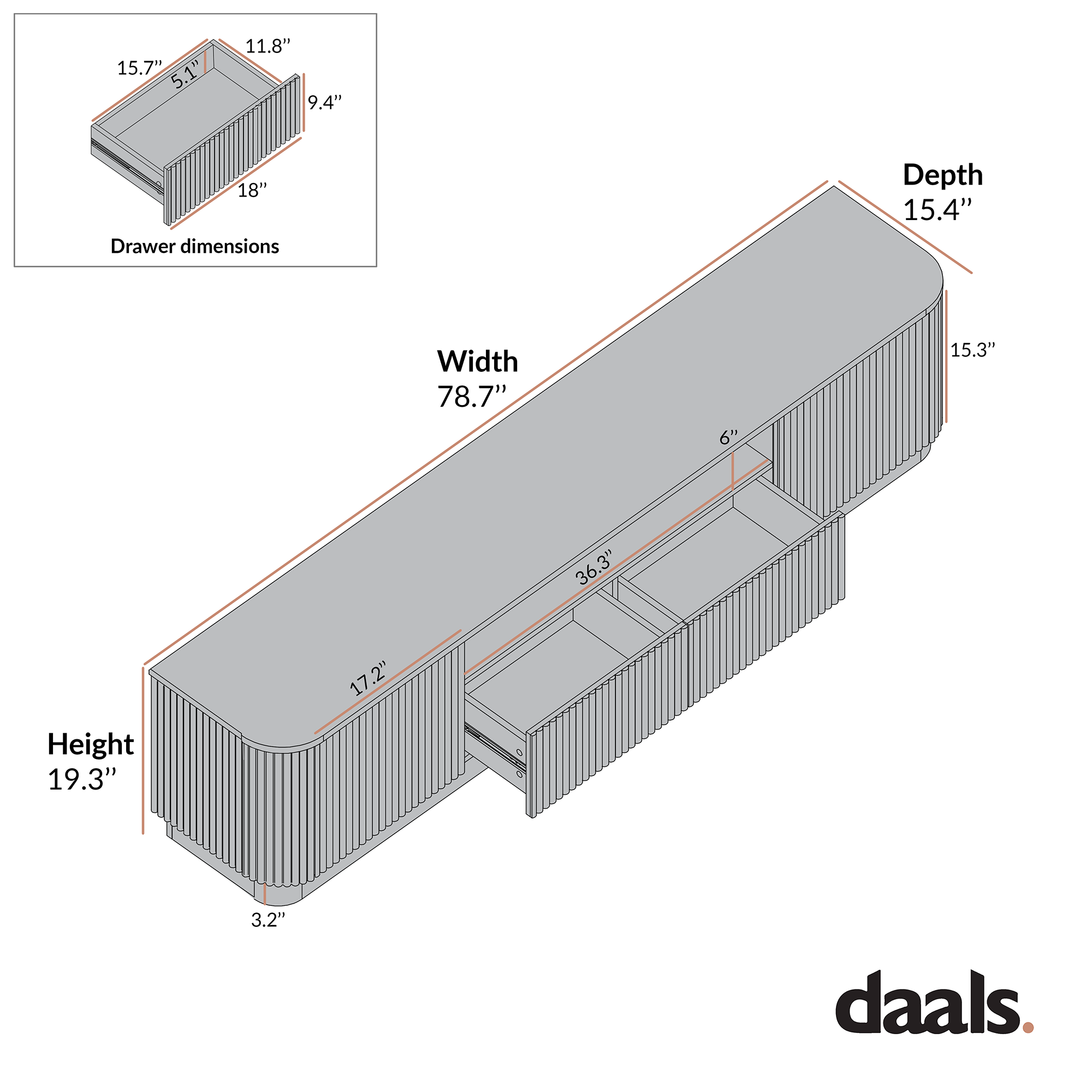 - Overall size: W 78.7 x D 15.4 x H 19.3 inches