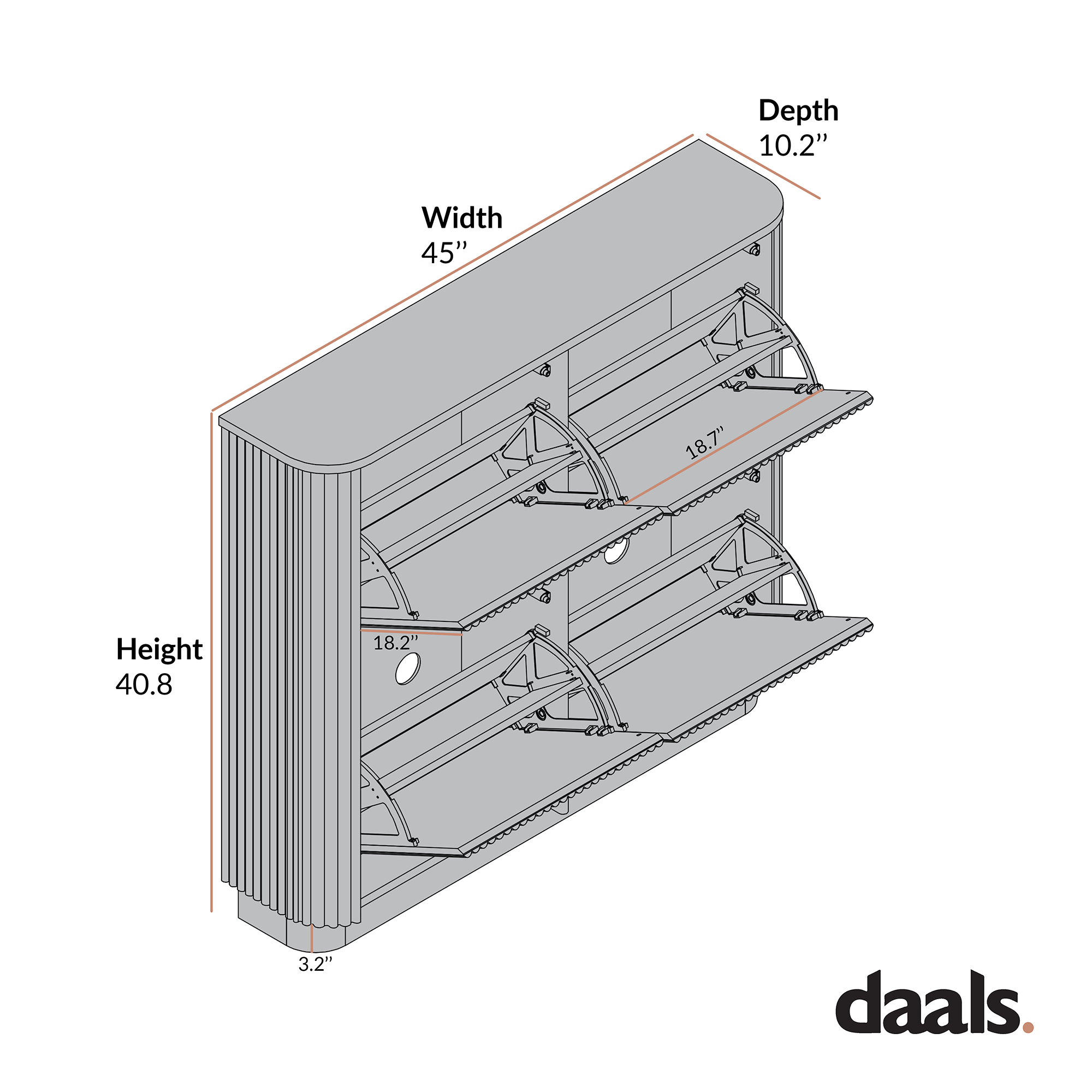 - Crafted to bring refined texture and structure to your entryway, our Maru 4-Door Shoe Cabinet elevates everyday storage with its signature fluted detailing and thoughtful proportions.