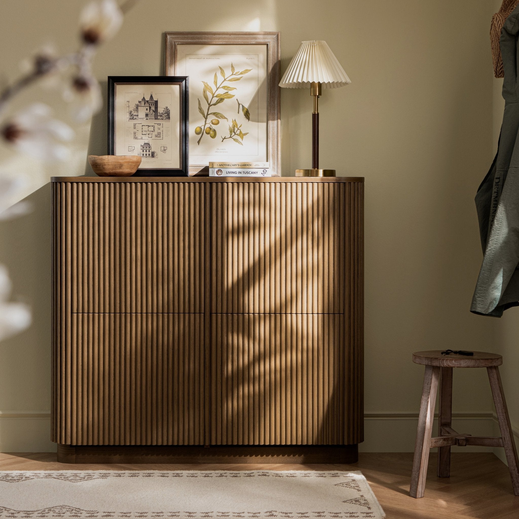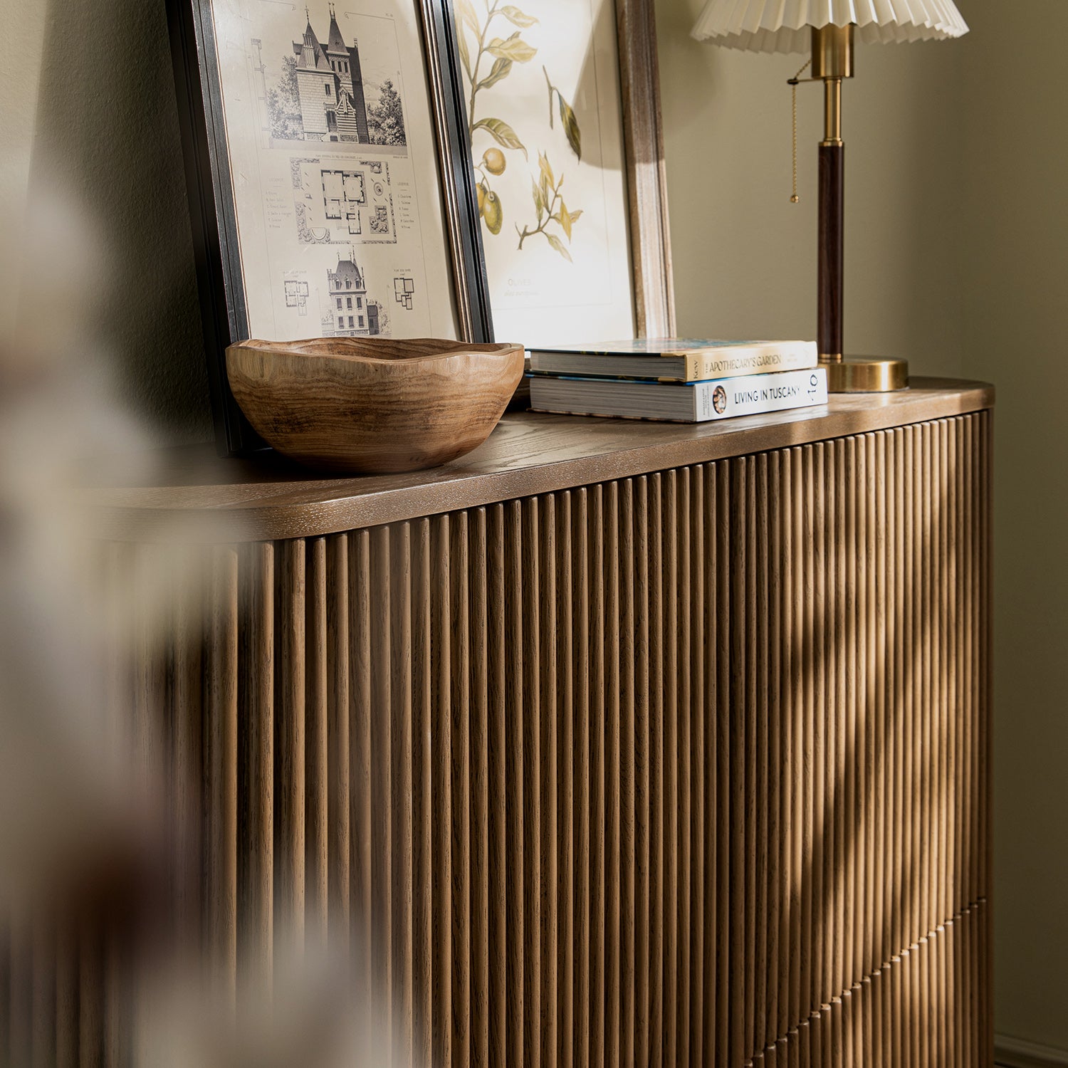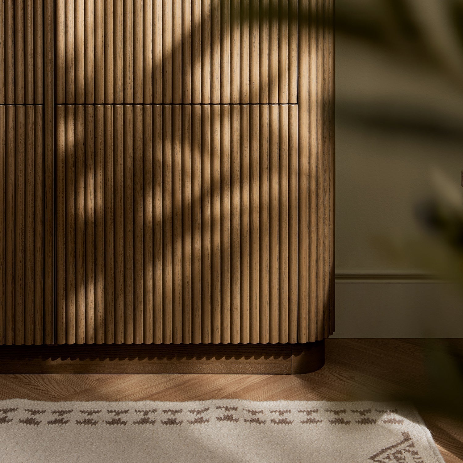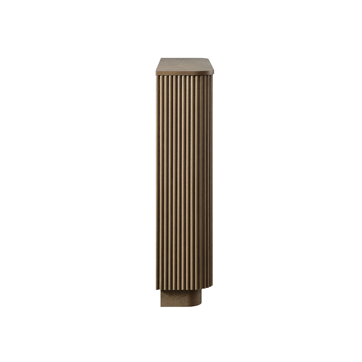- Its reeded wood facade creates a sense of quiet movement and texture, while soft edges and a clean silhouette allow it to sit naturally in both minimalist and design-led interiors.