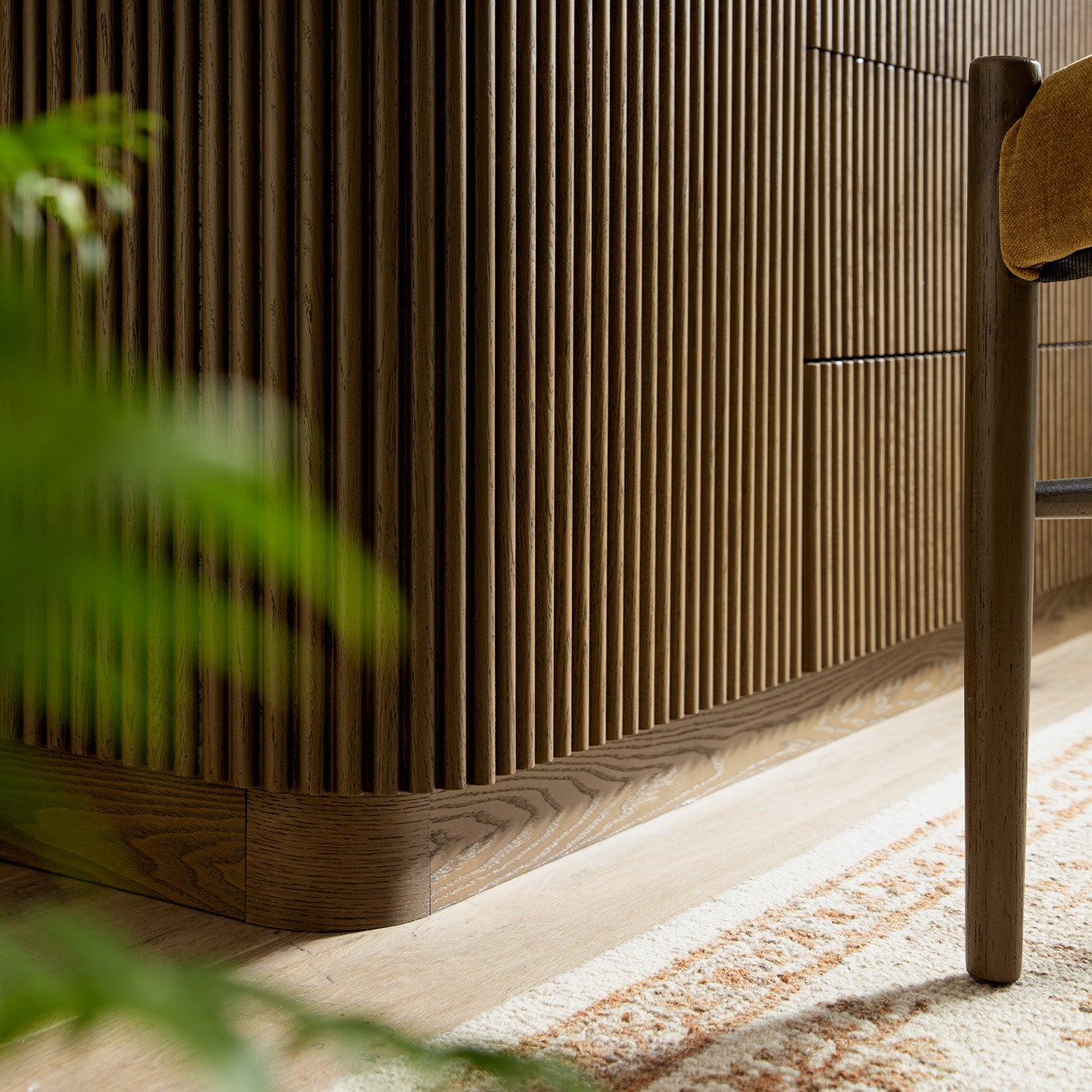 • Defined by its sculptural profile and tonal refinement, our Maru Wide Sideboard with 3 Drawers in Silver Oak brings thoughtful storage and architectural calm to contemporary spaces.