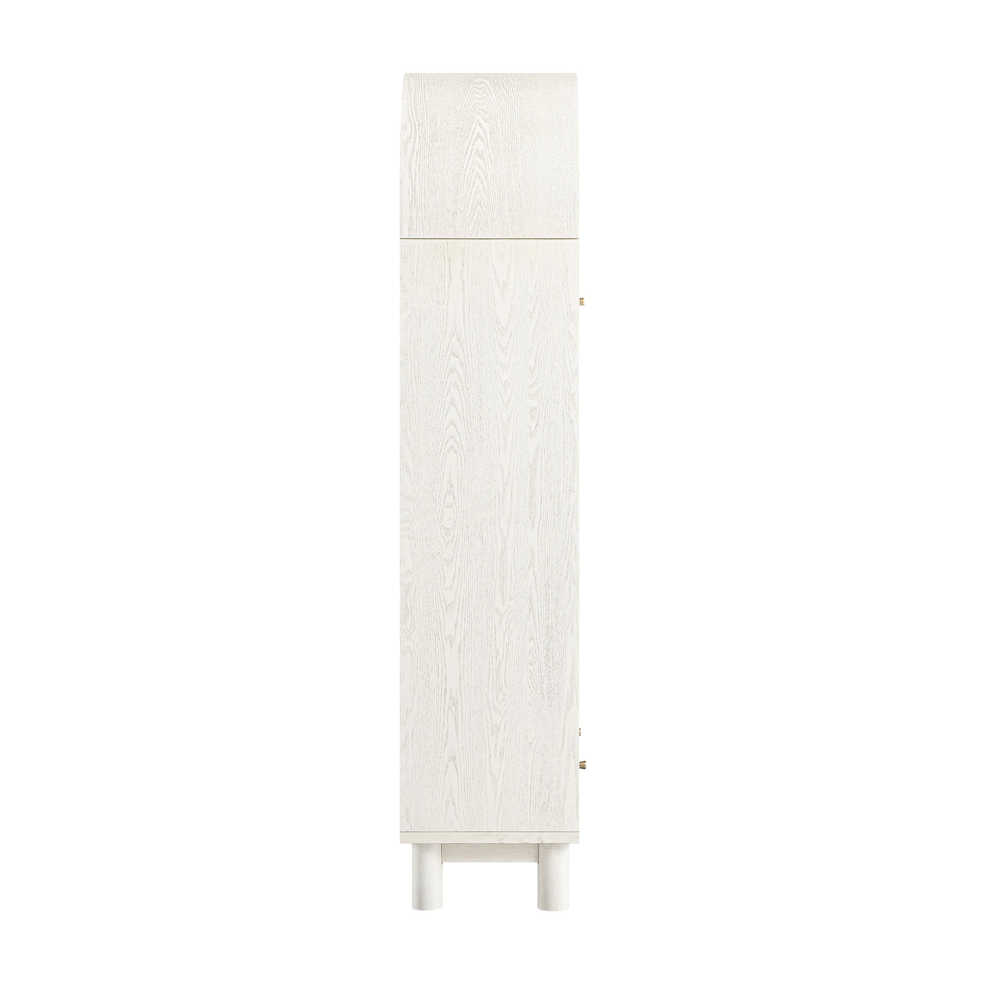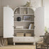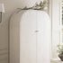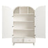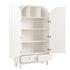 - Two arched cabinet doors open up to 4 shelves, on top of two bottom drawers, offering plenty of storage for all your tableware, barware, linens and other loose ends.