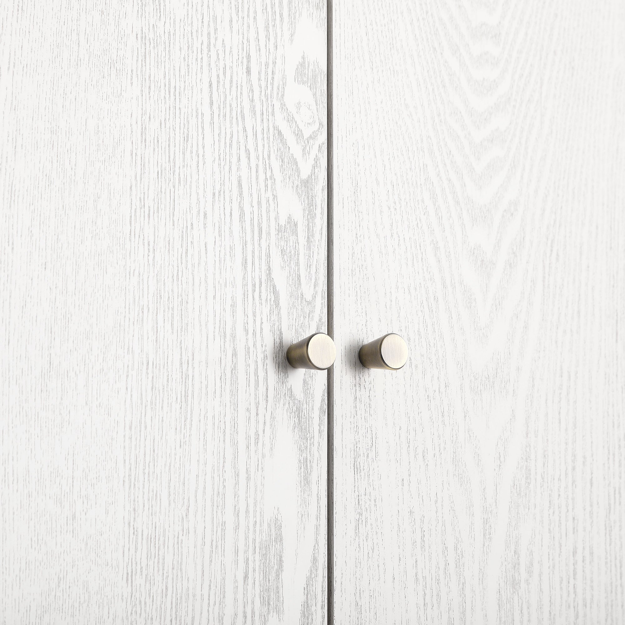 - Our Maude large storage cabinet features solid ash veneer, paired with antique brass effect metal handles.