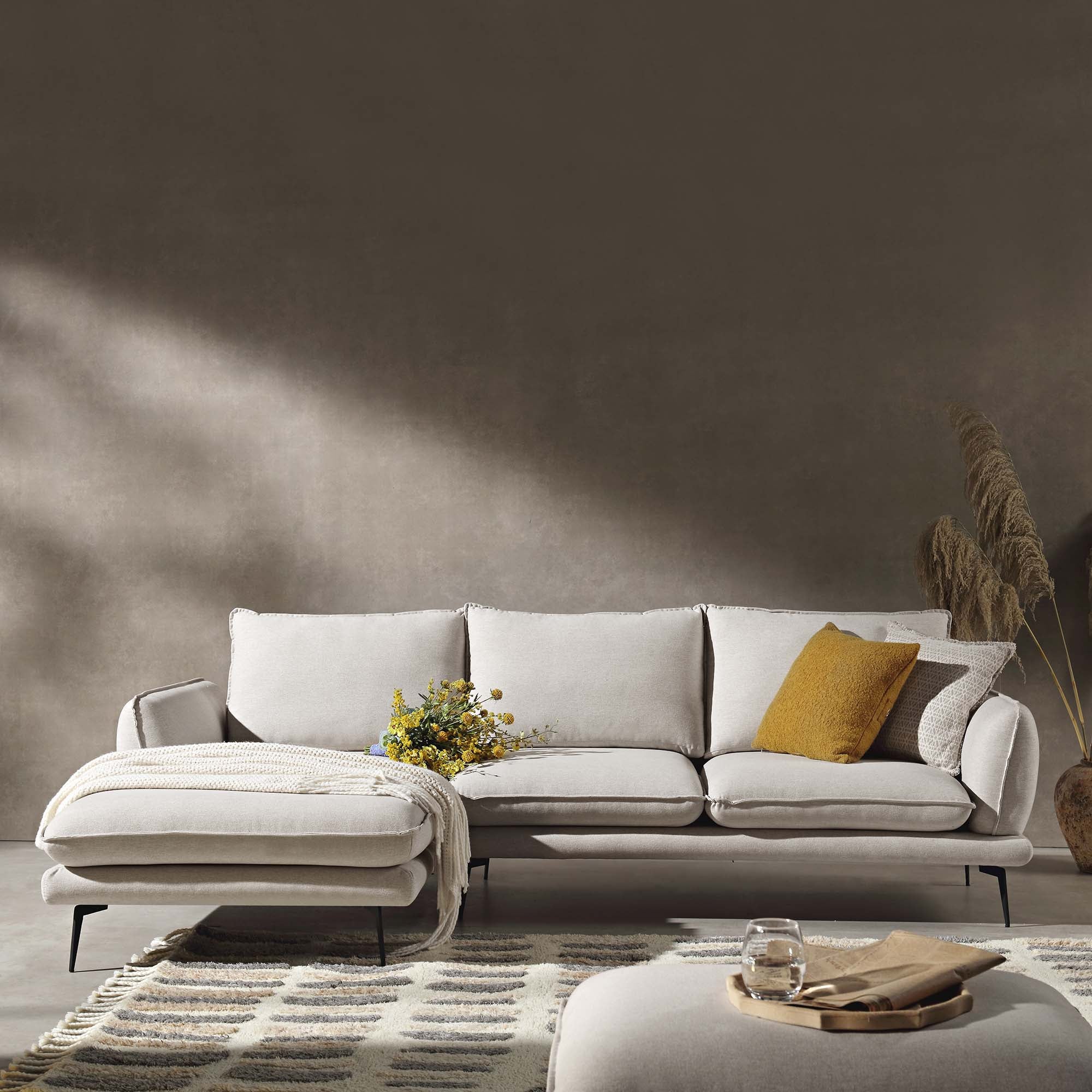 With a modern and inviting look, our Obriel sofa combines plump cushions with sleek frames.