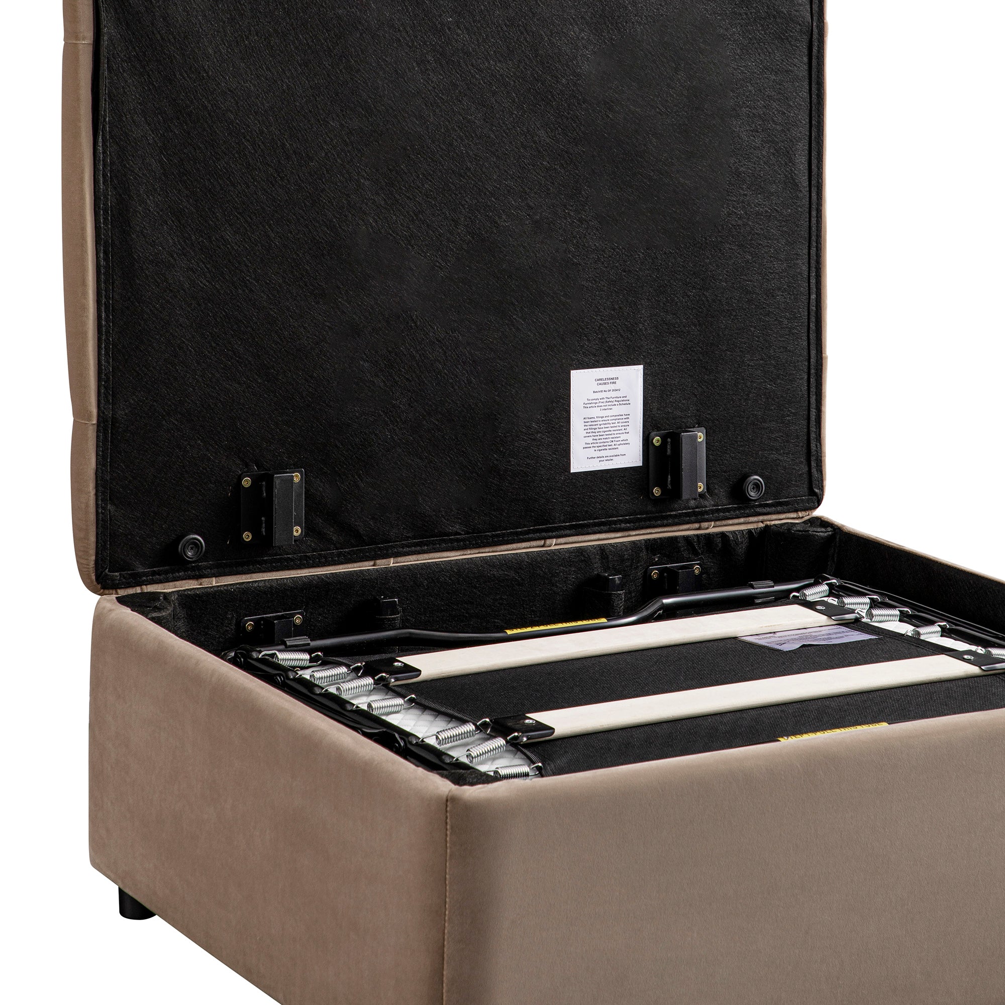 - The sturdy metal folding frame and supportive foam mattress are neatly concealed within the ottoman base, ready to be unfolded whenever extra sleeping space is needed.