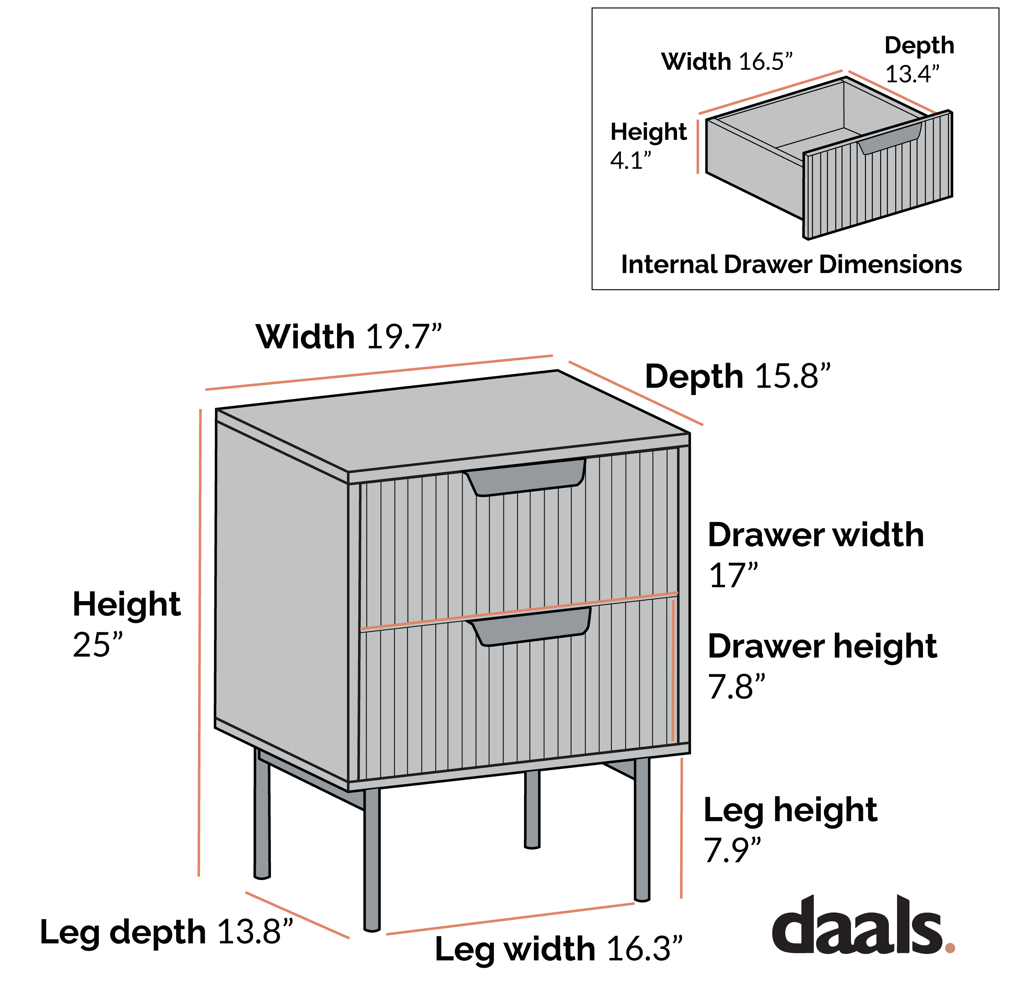 Richmond Ridged 2 Drawer Nightstand, Matte Taupe
