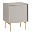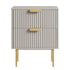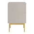 - The cabinet features ridged door surface finished in matte taupe paint paired with gold handles and legs, ideal for neutral tone home decor.