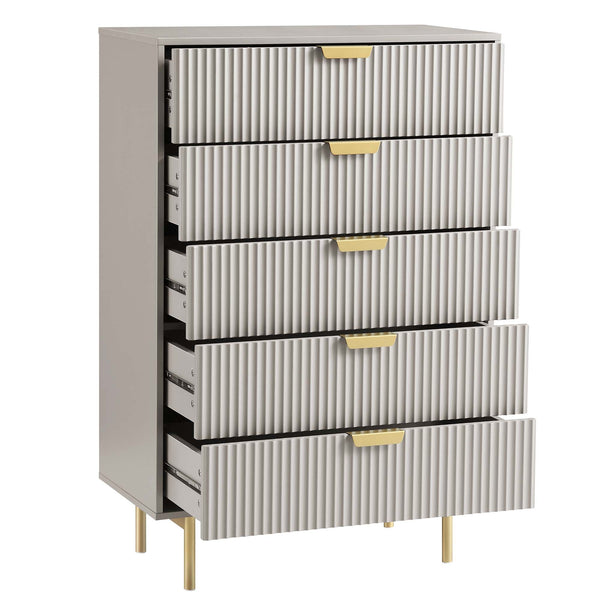 Richmond Ridged 5 Drawer Dresser, Matte Taupe