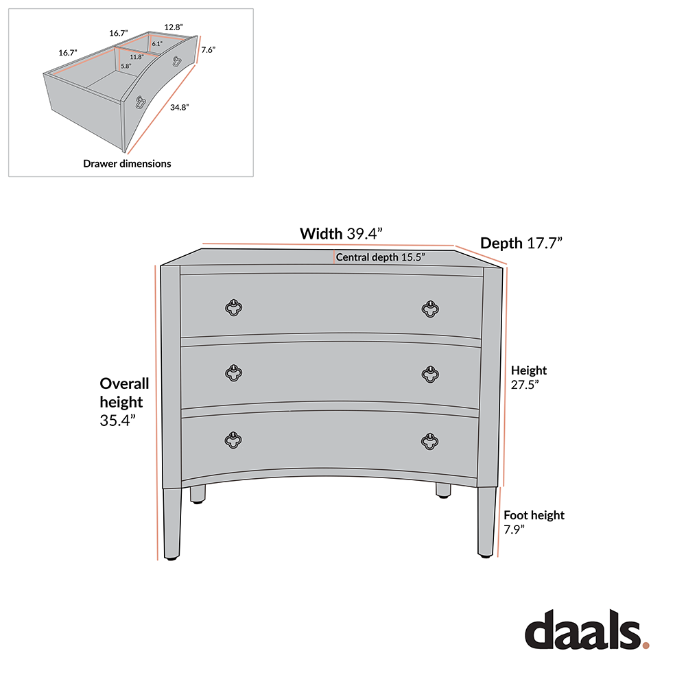 - The Thalia 3-Drawer Dresser comes packaged in one box