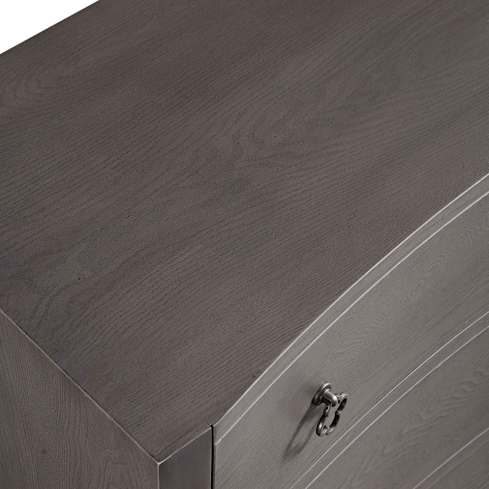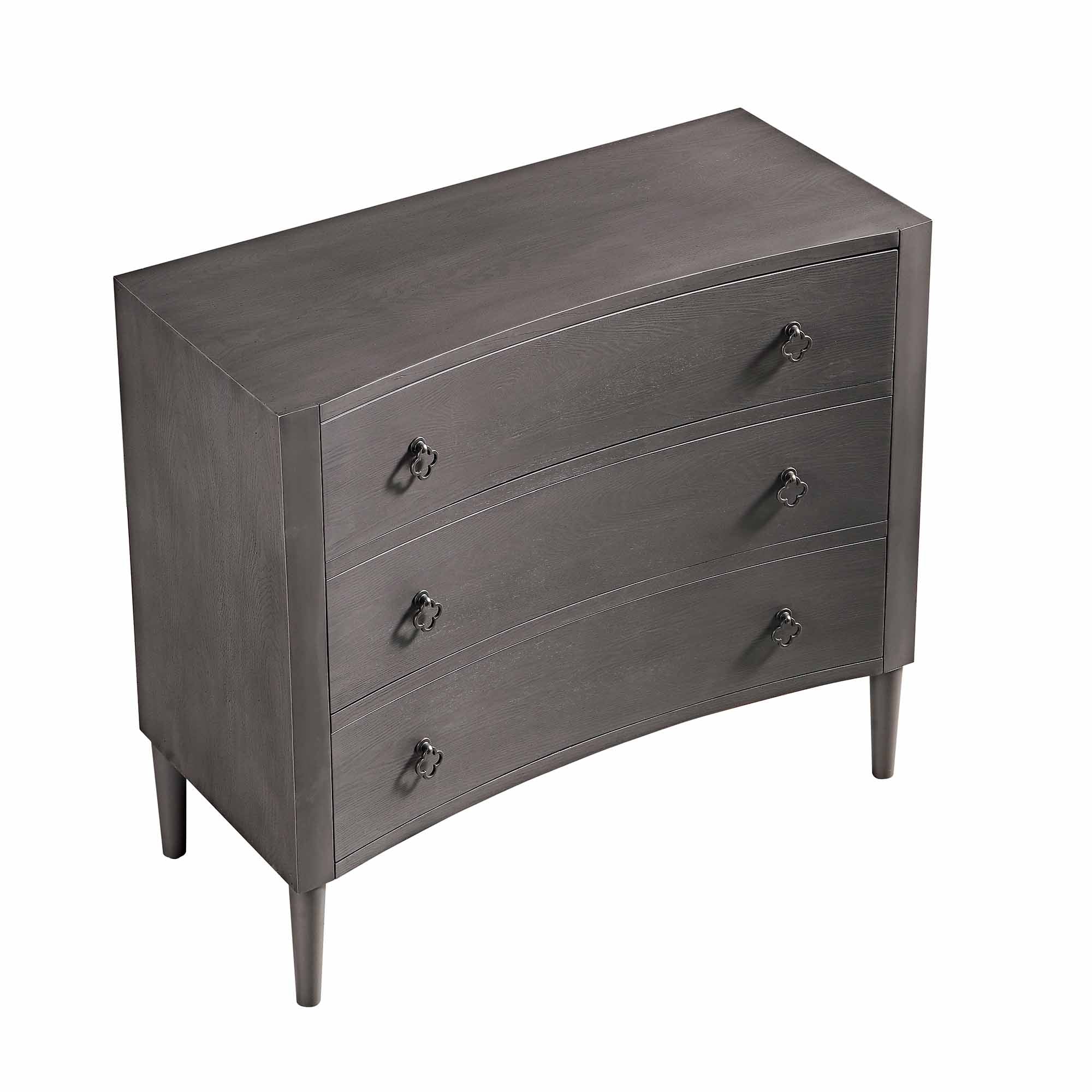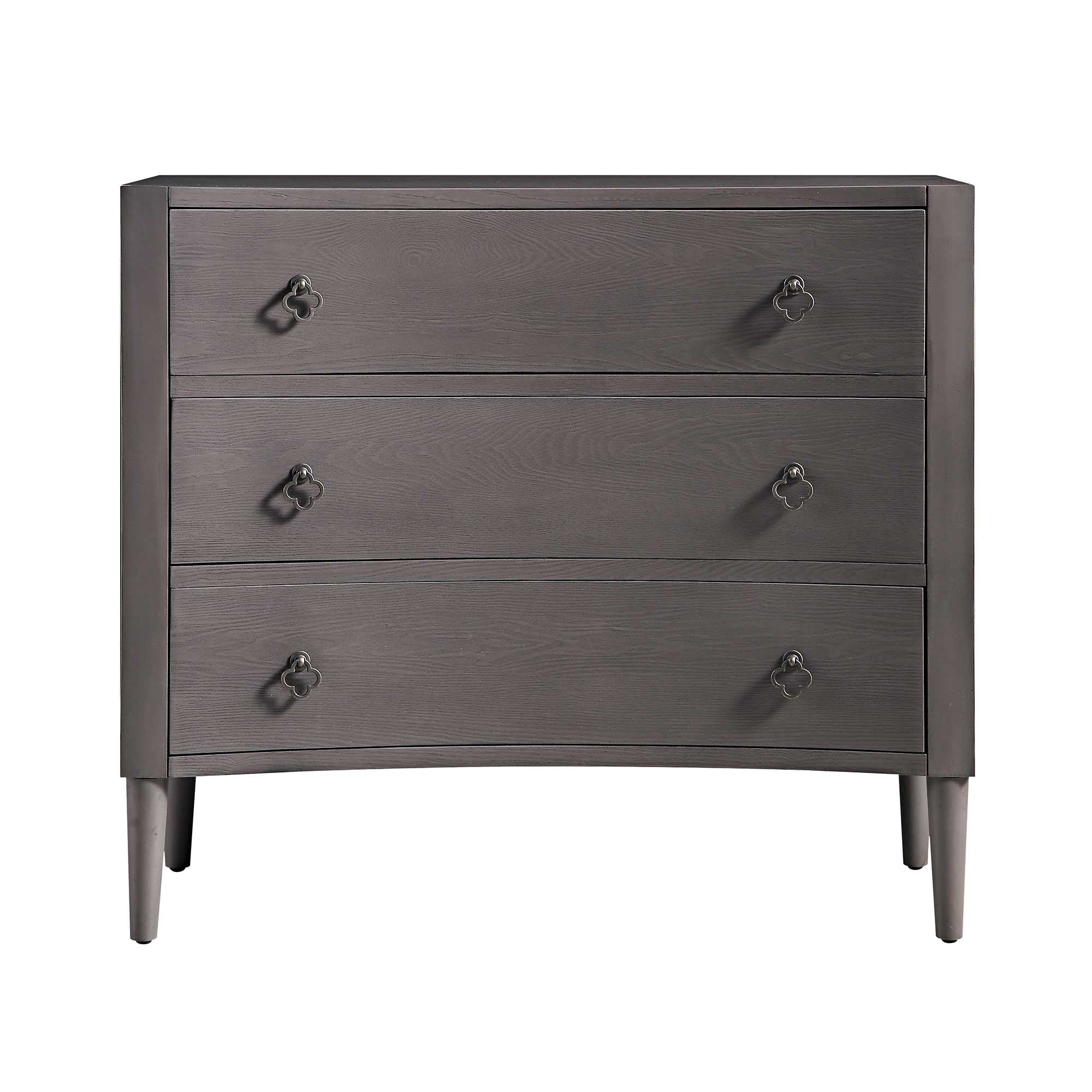- Featuring distinctive curved design, our Thalia 3 drawer dresser is crafted from solid ash veneer in a silver oak color finish.