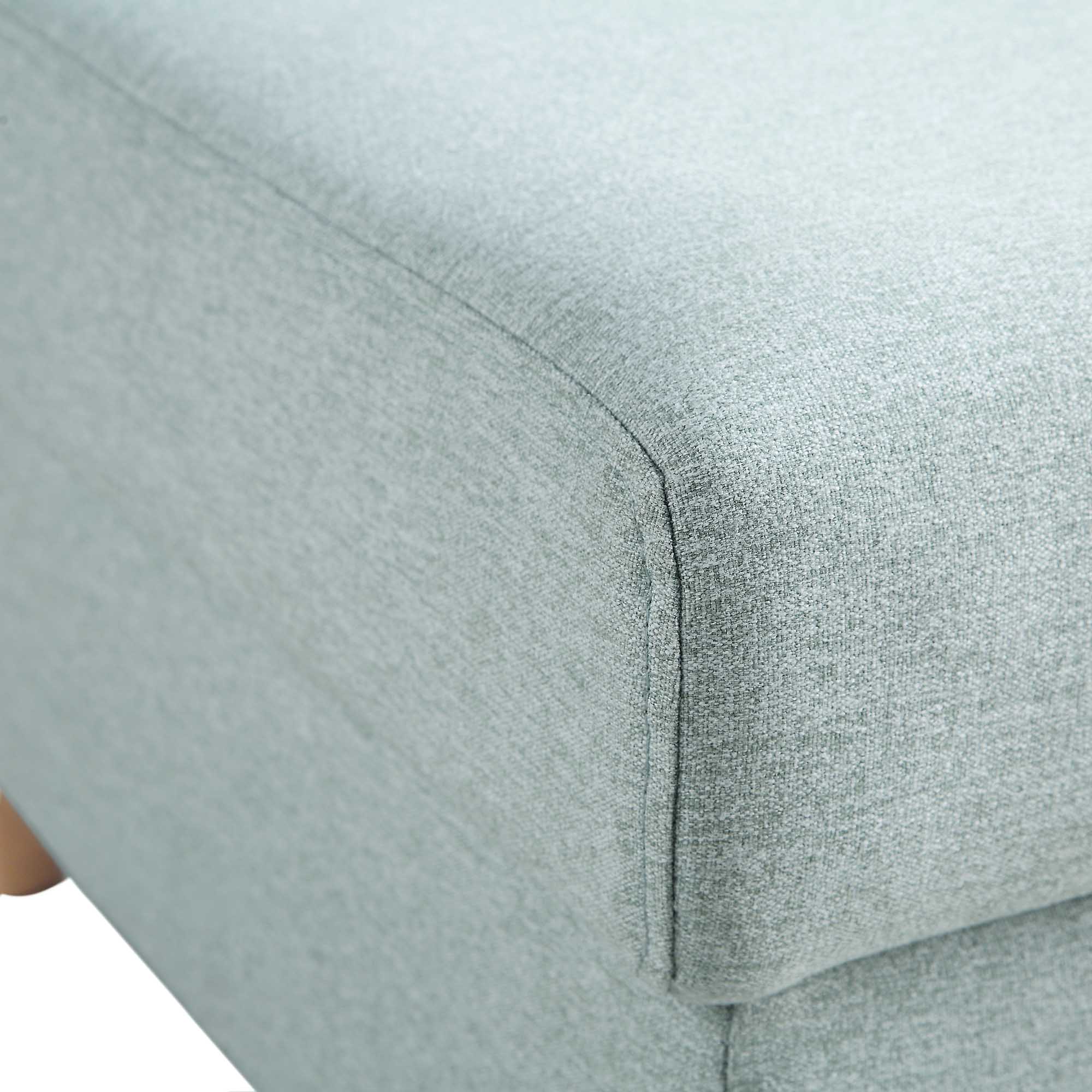 - Upholstered in soft, wool like fabric in pale sage green color